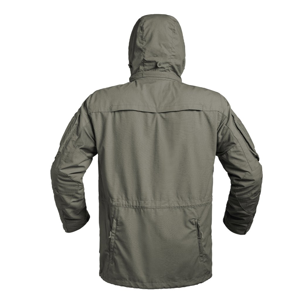 Bunda je vyrobena z lehké a pevné tkaniny Ripstop 5.0 s plošnou hmotností 210 g/m². Materiál je opatřen dvojitou TEFLON úpravou pro zvýšenou odolnost vůči vodě a nečistotám a technologií IR-PROTECT pro snížení viditelnosti v infračerveném spektru. Ergonomický střih je optimalizován pro maximální volnost pohybu a komfort při dlouhodobém nošení v terénu.