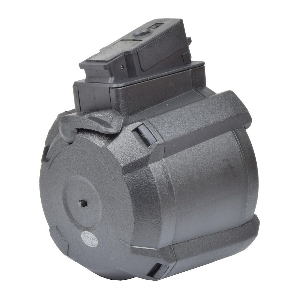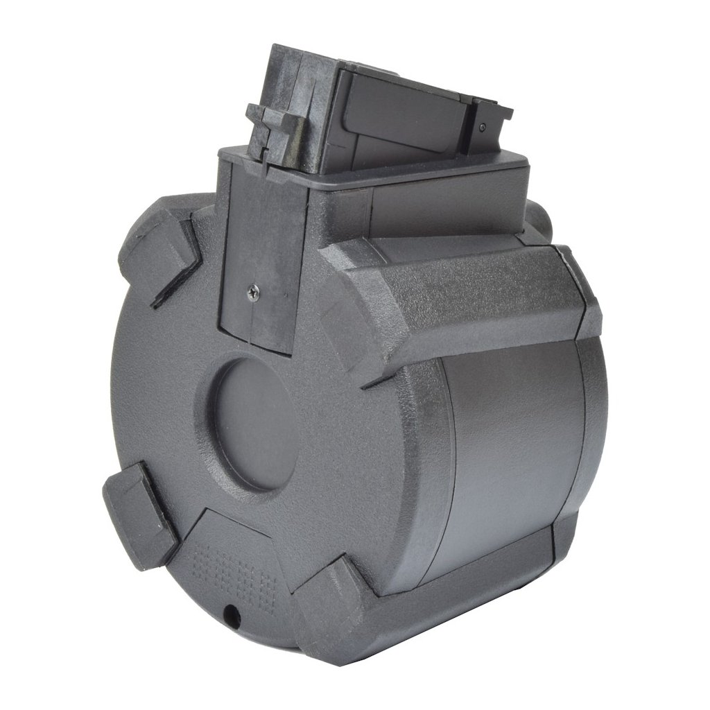 - Elektrický bubnový zásobník s kapacitou 1200 ran pro zbraně typu AK a kompatibilní modely