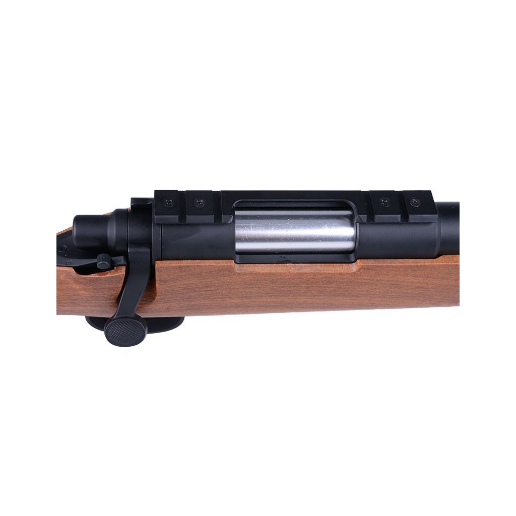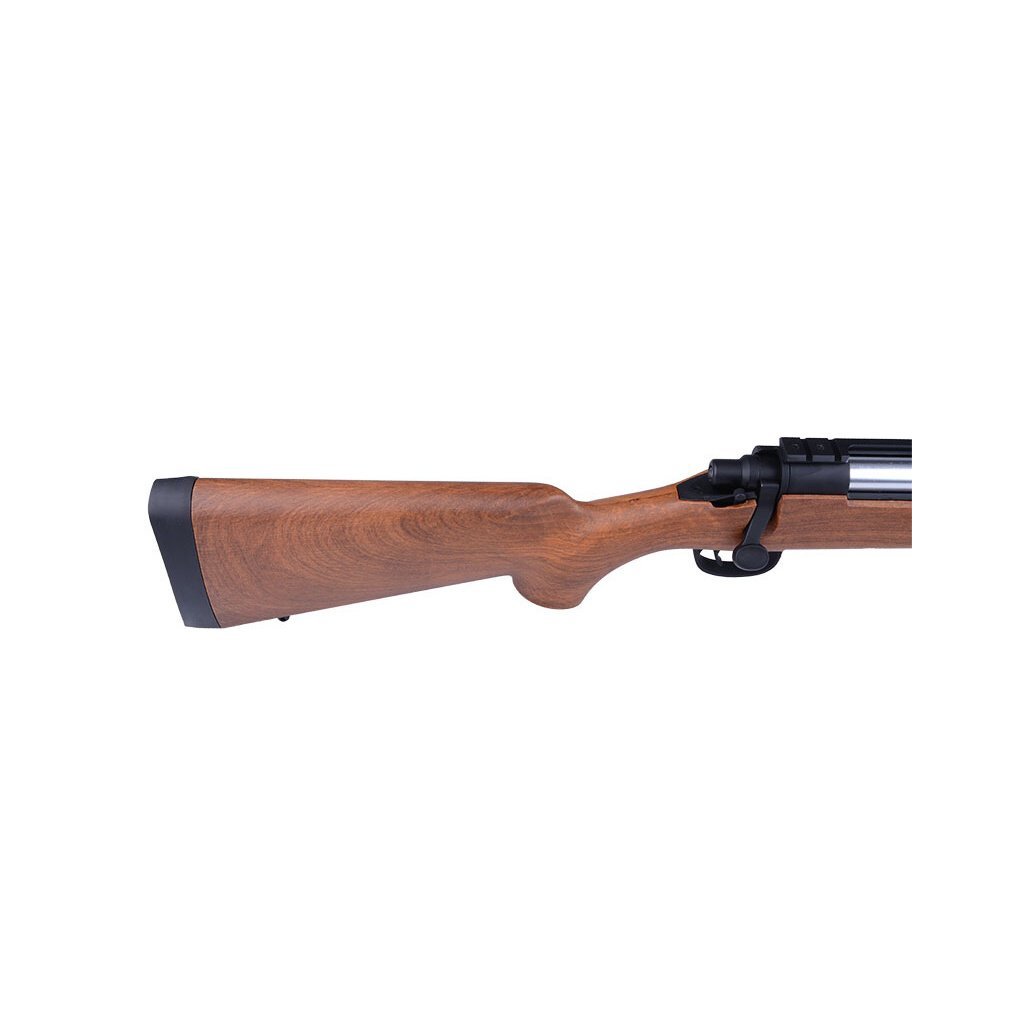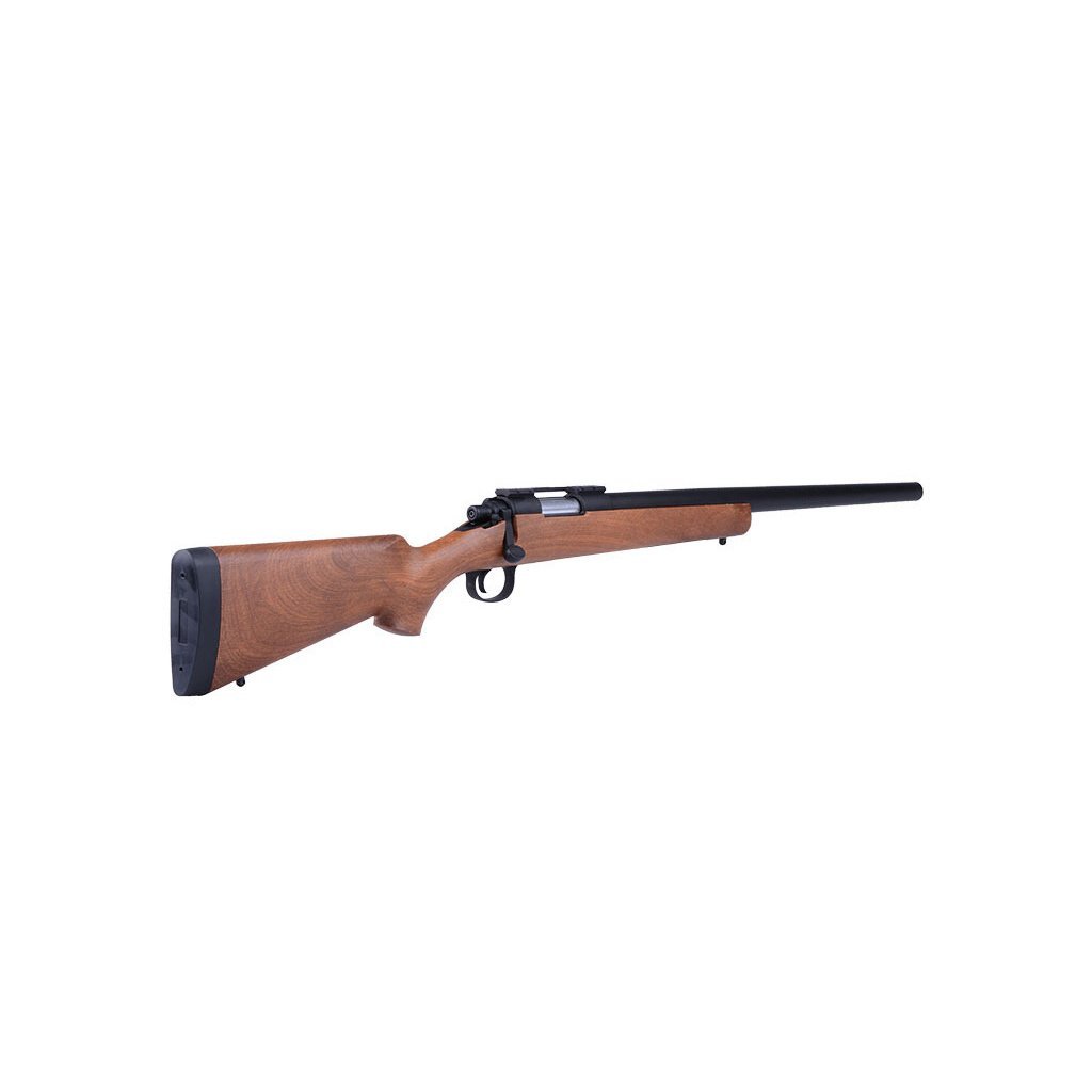 Airsoft sniper VSR-10 Cyma CM701C (imitace dřeva) je manuální odstřelovací puška inspirovaná populárním modelem VSR-10 a představuje kvalitní alternativu k japonskému originálu. Zbraň disponuje pevnou konstrukcí s kovovou hlavní a pouzdrem závěru, doplněnou polymerovou pažbou v imitaci dřeva. Již z výroby dosahuje výkonu přibližně 130 m/s, což zajišťuje velmi dobrý dostřel a přesnost. Nastavitelný hop-up systém ovládaný páčkou na boku zbraně umožňuje optimalizaci dráhy kuličky. Puška je vybavena RIS lištou pro montáž optiky a dodává se se zásobníkem a praktickým příslušenstvím pro snadnou údržbu.