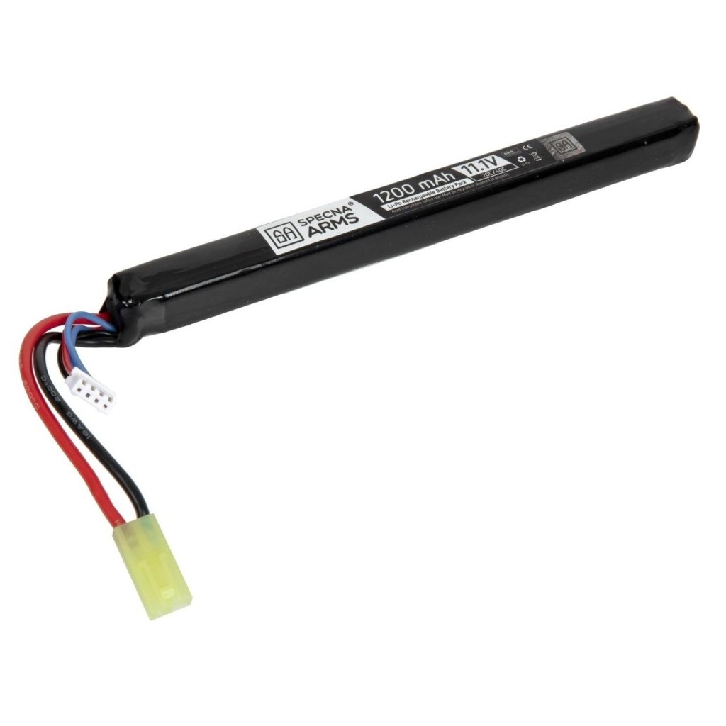 - Výkonný Li-Pol akumulátor 11.1V/1200mAh (3S/20-40C) určený pro airsoftové zbraně typu AK značky Specna Arms