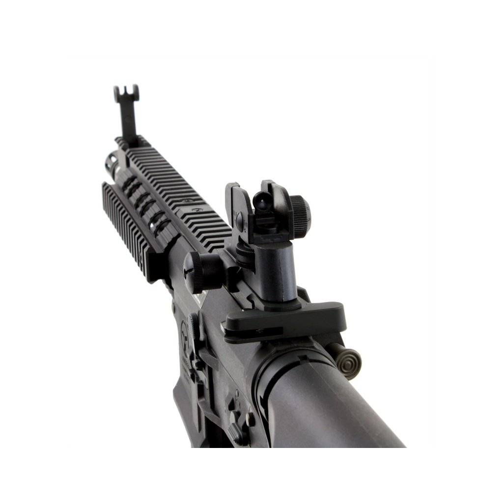 ARES Amoeba AM-008 Combat Gear Series (černá) je moderní elektrická airsoftová replika typu M4 RIS s elektronickou spoušťovou jednotkou EFCS, rychlou výměnou pružiny a lehkým, ale vysoce odolným polymerovým tělem, vhodná pro univerzální použití v terénu i CQB.