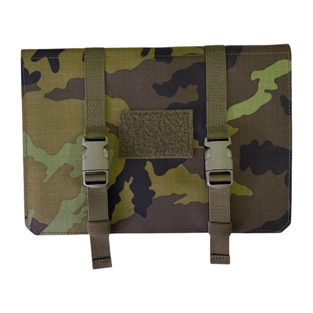 - **Přehledné členění:** Dvě průhledné vnitřní přepážky na přední straně slouží pro uložení TCCC a MEDEVAC karet nebo jiných důležitých dokumentů.