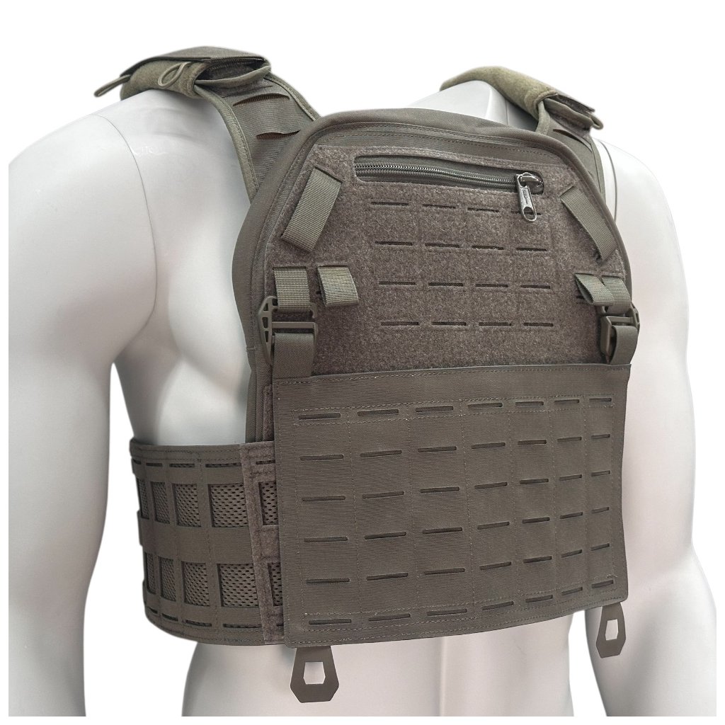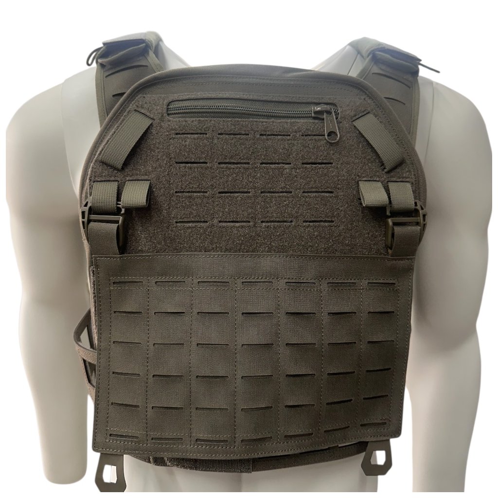 Modulární konstrukce nosiče umožňuje rychlou instalaci a nastavení bez nutnosti asistence druhé osoby. Balistické panely se vkládají shora do přední i zadní části a jsou zajištěny spirálovými zipy, které lze snadno ovládat i v rukavicích. Stabilní uchycení panelů je zaručeno i při plném osazení výstroje.