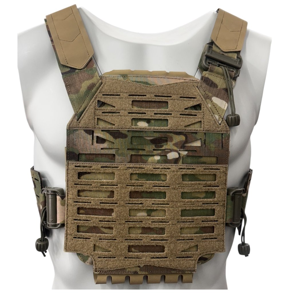 - Lehký a odolný taktický nosič plátů české výroby s laser cut MOLLE vazbou v provedení Multicam.