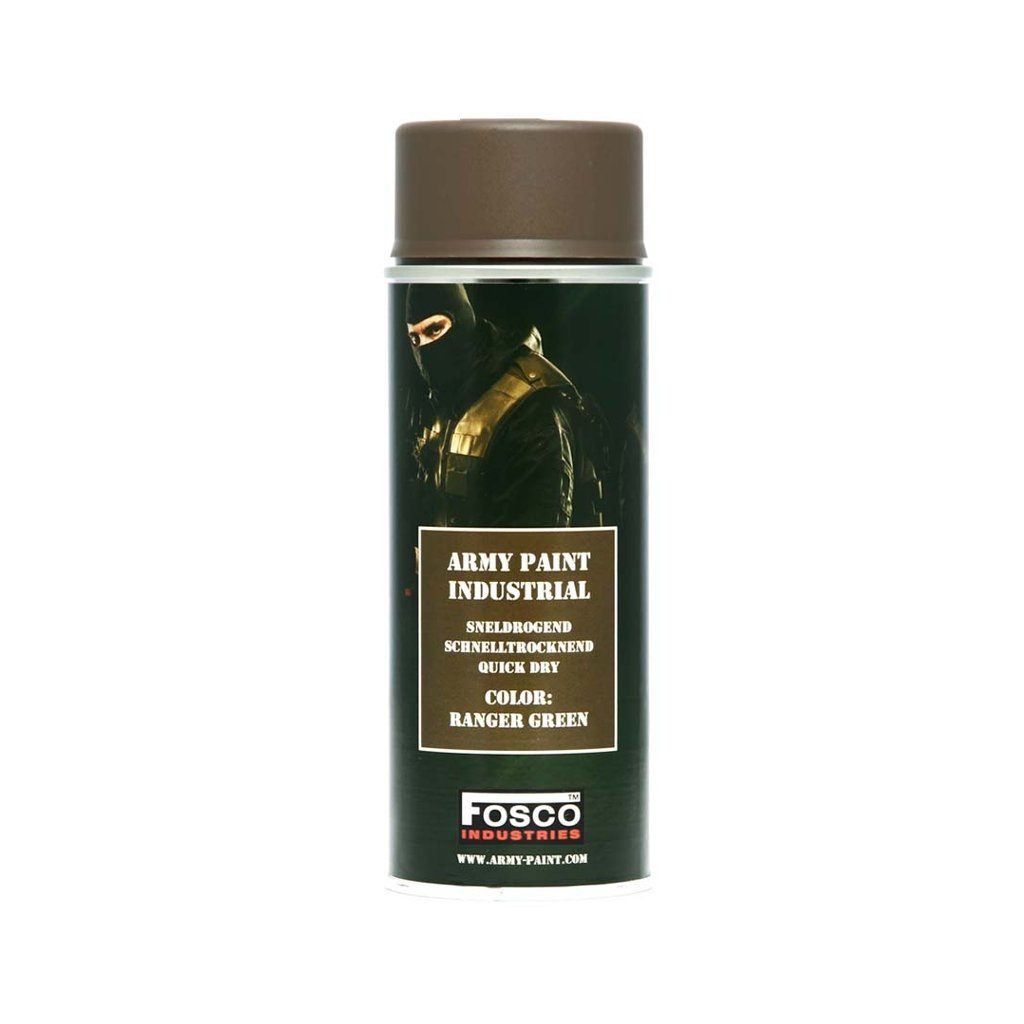Army Spray maskovací barva ve spreji 400 ml (Ranger Green) – FOSCO je vysoce kvalitní a rychleschnoucí kamuflážní barva navržená pro efektivní maskování zbraní, techniky a dalších součástí výstroje. Barva dobře přilne na různé materiály – kov, plast, dřevo či textil, přičemž nejlepší přilnavosti dosahuje na kovových površích.