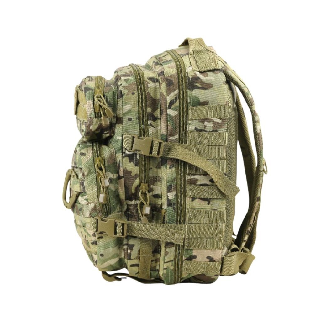 Batoh Small Assault Pack, 28 L - Kombat UK je univerzální taktický batoh, který nabízí ideální kompromis mezi kompaktními rozměry a dostatečným objemem 28 litrů pro běžnou výbavu. Hlavní a vedlejší komory umožňují přehledné uspořádání vybavení, přední kapsy jsou vhodné pro drobnosti a často používané předměty. Kompresní popruhy po stranách pomáhají stáhnout náklad a stabilizovat obsah batohu při pohybu, zatímco polstrované ramenní popruhy a zádová část zajišťují pohodlné nošení i po delší dobu. Taktický vzhled a odolné provedení dělají z tohoto batohu praktickou volbu pro airsoftové hráče, příslušníky ozbrojených složek, ale i pro běžné městské a outdoorové použití, kde je požadována robustnost, funkčnost a dobrá organizace prostoru.