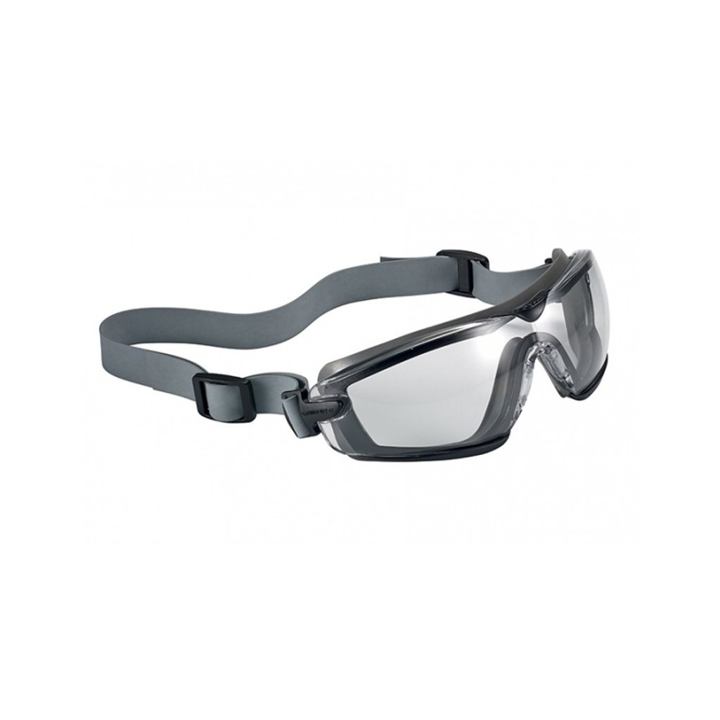 COBRA kompaktní ochranné brýle, ve verzi s čirým zorníkem, rámem utěsněným TPR gumou a nastavitelnou, flexibilní neoprenovou páskou.