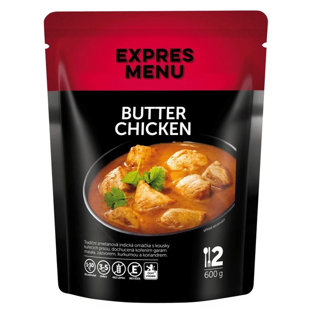 Butter Chicken (2 porce, 600 g) je hotové sterilované jídlo inspirované tradiční indickou kuchyní. Produkt obsahuje pečená kuřecí prsa (33 %), smetanovou omáčku, máslo (7,2 %) a směs koření (garam masala, koriandr, zázvor, kurkuma, skořice, římský kmín), které společně vytvářejí charakteristickou chuť pokrmu. Dále jsou obsaženy rajčata, cibule, limetková šťáva, česnek a sůl.