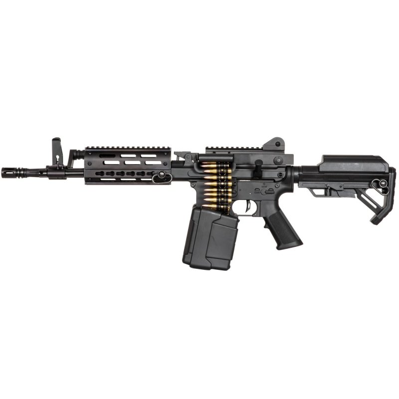 Výrobce A&K Kód varianty 1264 Záruka 24 měsíců Hmotnost balení 7.74 kg Model zbraně Série M249 Typ pohonu zbraně Elektrická AEG Materiál těla zbraně Kov Barva Černá Úsťová rychlost 120 m/s Typ mechaboxu Verze M249 -