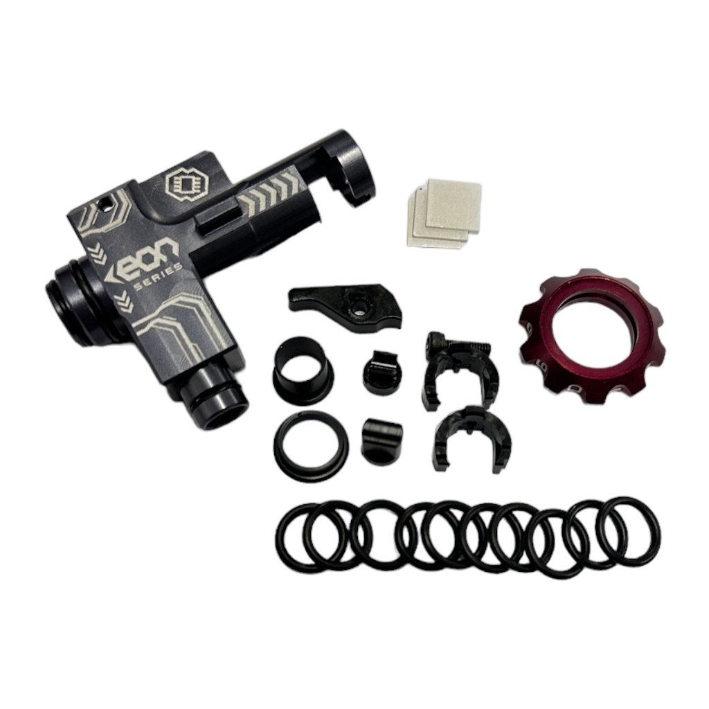 Tato CNC hop-up komora EON pro zbraně typu M4 je precizně vyrobena z titanové slitiny, což zajišťuje vysokou odolnost, nízkou hmotnost a dlouhou životnost. Komora je navržena pro maximální přesnost a spolehlivost při podávání kuliček. Součástí balení je také systém red-GATE, který umožňuje jemné a přesné nastavení přítlaku hop-upu pro optimalizaci letové dráhy střely. Komora je kompatibilní s většinou standardních vnitřních hlavní a gumek typu M4. Díky použití moderních výrobních technologií a kvalitních materiálů je tento produkt vhodný pro náročné uživatele a soutěžní použití.