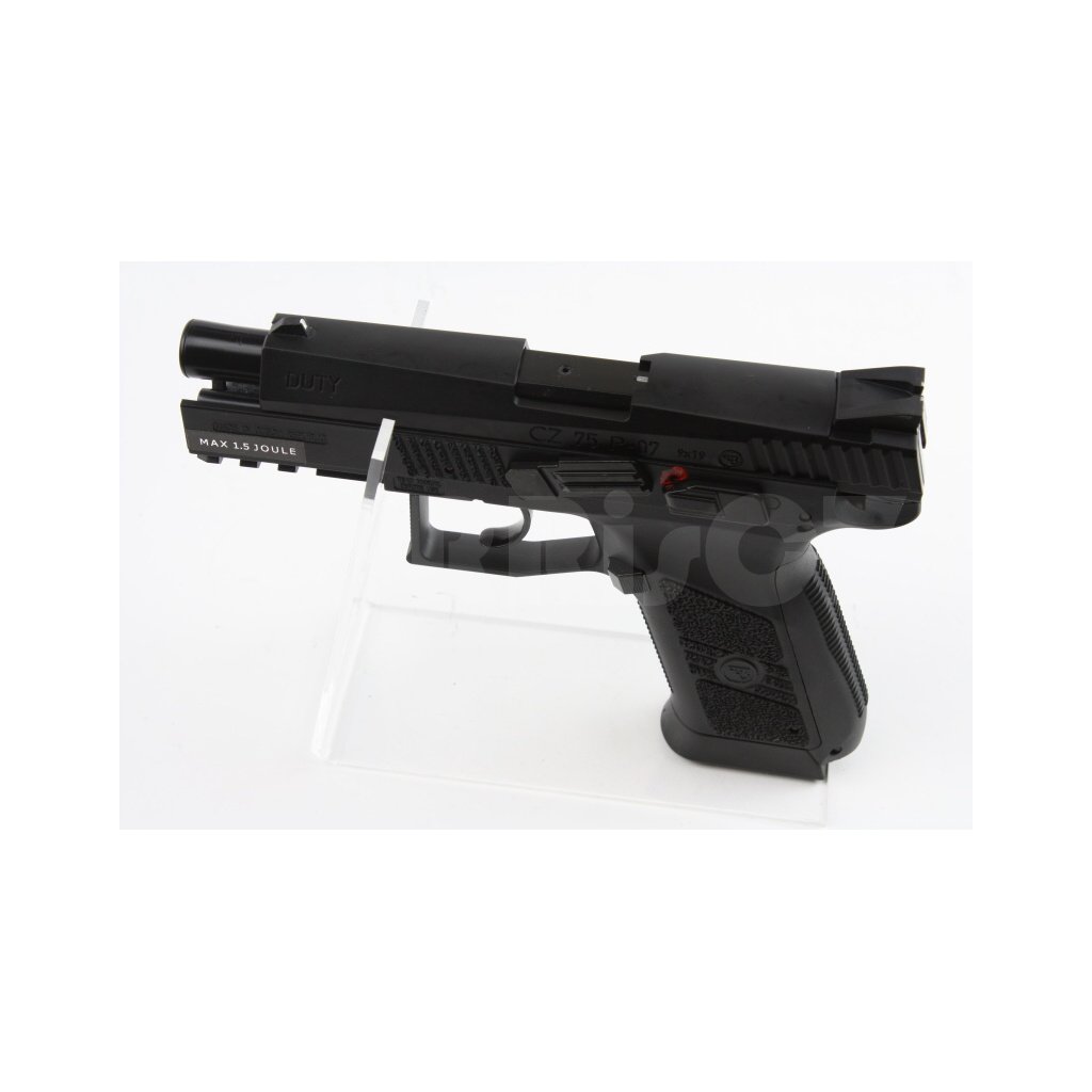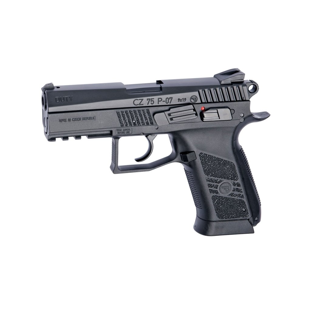 CZ75 P-07 DUTY CO2 (GBB) – ASG je realistická plynová airsoftová pistole na CO2 s blowbackem, nastavitelným Hop-Upem a kovovým závěrem, vyrobená jako věrná replika služební zbraně AČR.