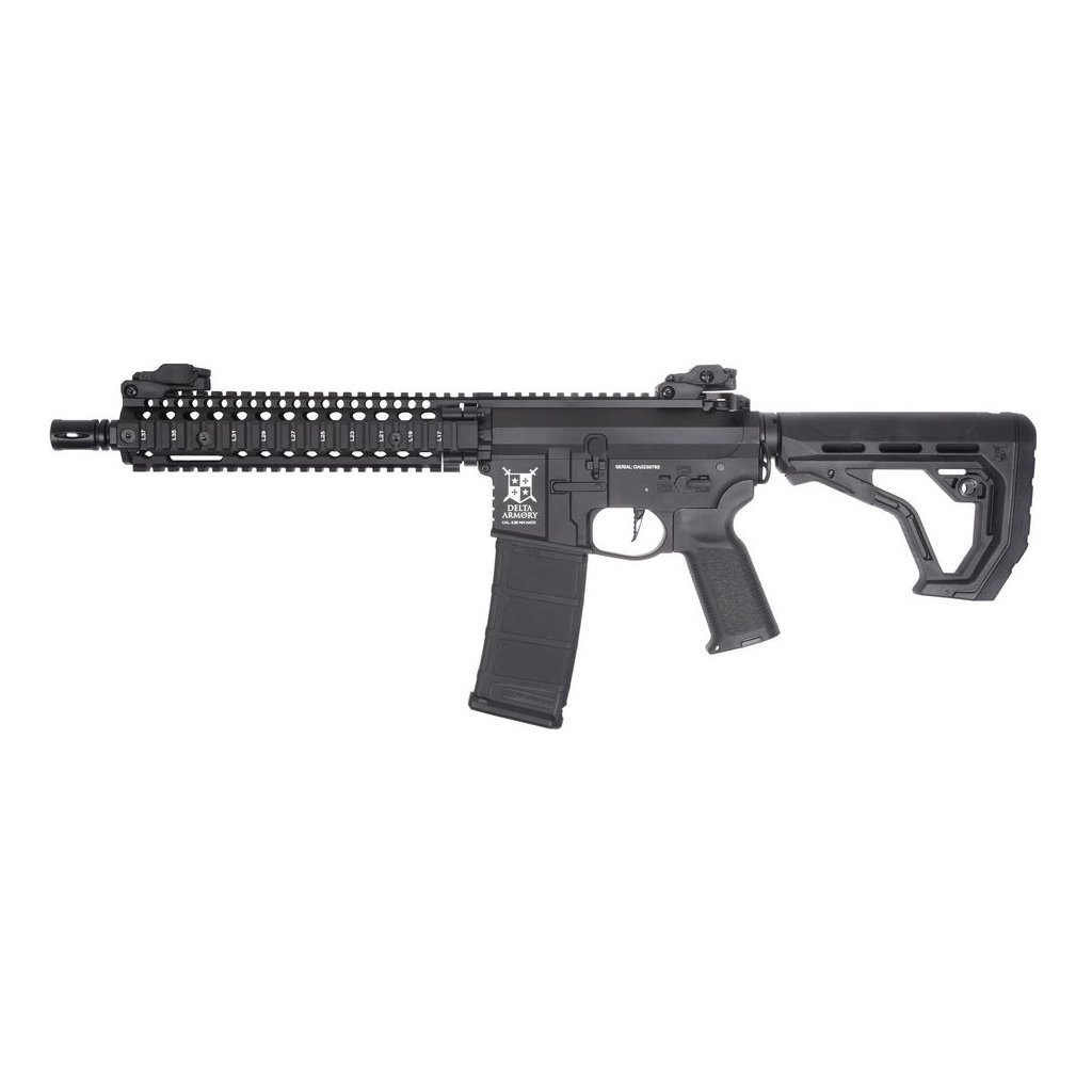 Delta Armory AR15 MK18 Alpha EAGLE Black (DA‑A07‑EGL) je špičková celokovová elektrická airsoftová zbraň s elektronickou spouští EAGLE ETU, která nabízí extrémně rychlou odezvu, široké možnosti nastavení střelby a kompatibilitu s 11,1V Li‑Po bateriemi. Ideální volba pro náročné hráče, kteří chtějí maximální kontrolu a výkon bez nutnosti upgradu.
