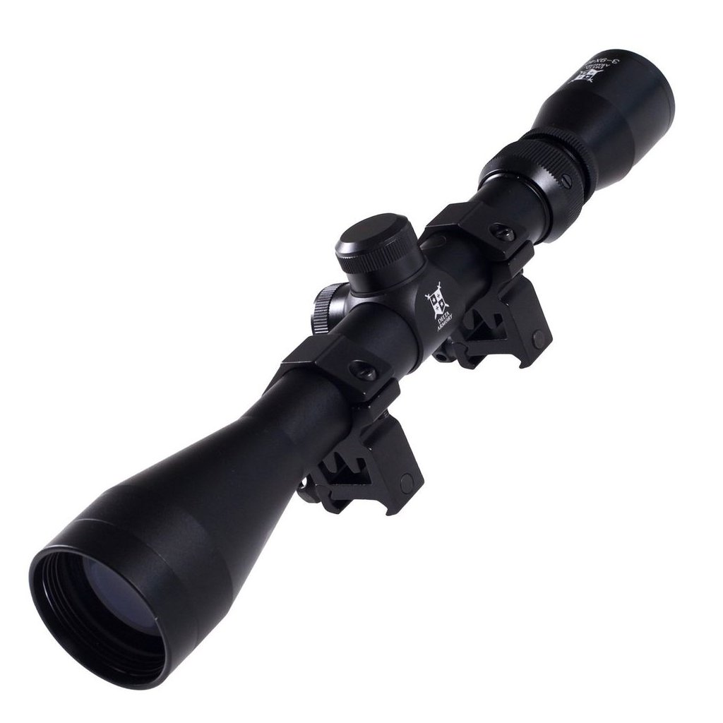 The 3-9x40 scope from Delta Armory is used for precise shooting and is intended for airsoft guns. Instead of a traditional front sight and gap, it is equipped with a reticle that increases aiming accuracy and is located in the focal plane. The 3-9x40 scope with a 40 mm objective lens diameter has a ZOOM magnification of 3 to 9 times. It is resistant to moisture, dust, fogging, and common impacts. It has removable protective lens covers. It can also be used as a spotting scope. The scope is all-metal and made of anodized aluminum in a non-reflective matte black finish. The tube diameter is 1" (2.54 cm). It is mounted on a 22 mm RIS. The package includes 22 mm mounting rings.