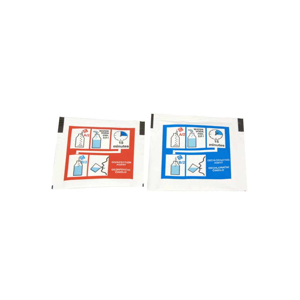 AQUASTERIL Extreme Water Disinfection 5x2L (ARMY) is a durable kit for emergency water treatment that effectively eliminates bacteria, viruses, and parasites. Contains five pairs of sachets with disinfecting and dechlorinating agents, allowing for the treatment of up to 10 liters of water. The sachets are protected by a polyethylene wrapper and a paper box, withstanding extreme temperatures (-50 °C to +60 °C) and high humidity. The kit is ideal for hiking, camping, expeditions, or stays in areas with insufficiently hygienically secured water, ensuring safe, microbiologically safe water without affecting its taste or chemical composition.