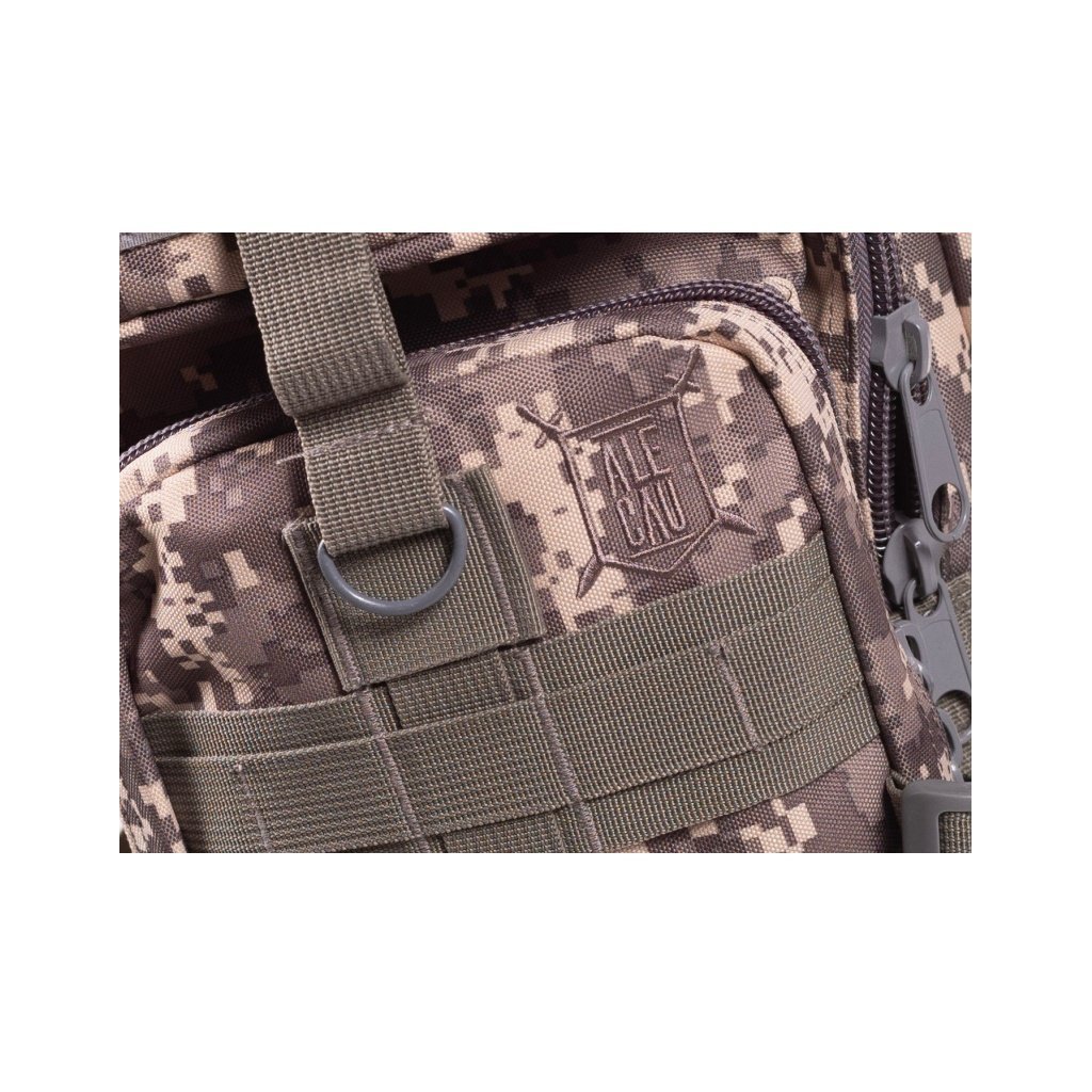 Assault Backpack ALU CAU, 20 L - Delta Armory is a versatile tactical backpack of smaller size, combining a practical volume of 20 liters with a durable construction and an attractive ALU CAU camouflage pattern. It offers a main compartment for storing essential equipment, secondary compartments, and front pockets for small items and quickly accessible objects, as well as compression straps for tightening the load and improving stability during movement. Padded shoulder straps and back panel ensure comfortable wear even during prolonged use, and adjustable straps help with optimal weight distribution. Thanks to its tactical design, the backpack is suitable for airsoft, shooting events, service use, as well as everyday urban and outdoor use, where you will appreciate the combination of functionality, durability, and camouflage appearance.