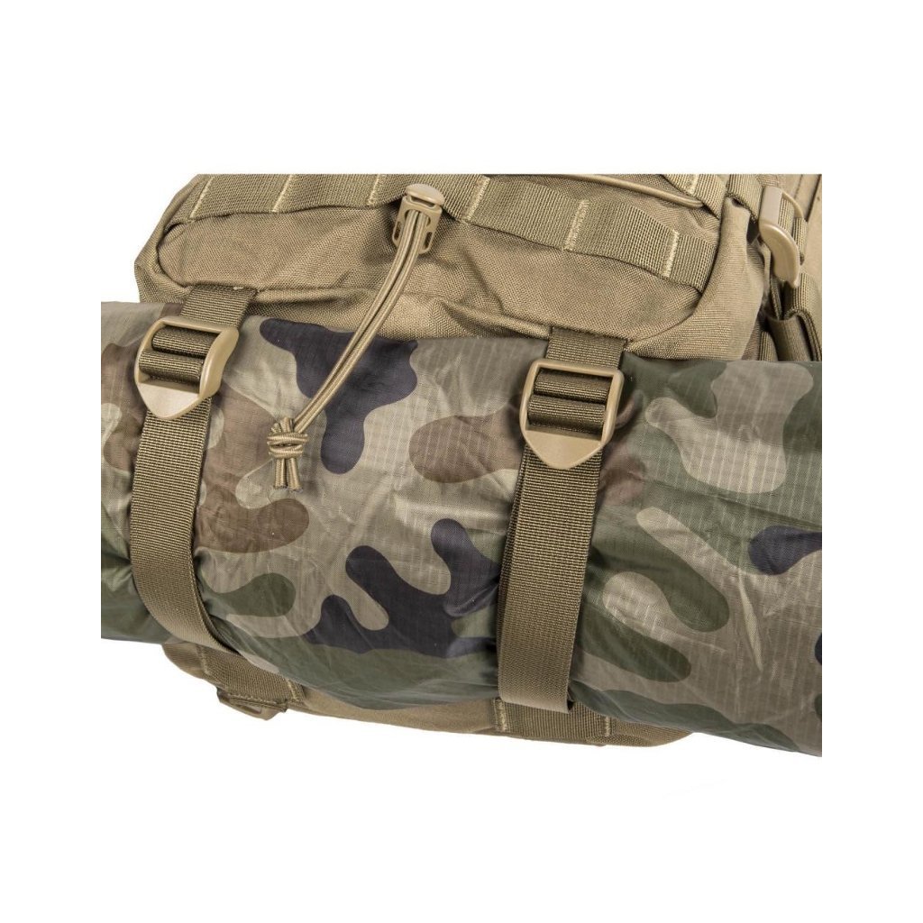 The Raccoon Mk2 Backpack® has one external pocket the size of the main compartment. Inside, there is a simple organizer for carrying other items. The main compartment has one flat internal pocket and a Camelbak holder. For heavy loads, the simple webbing hip belt correctly distributes the weight, while the straps allow for quick jettisoning of the load. The exterior is covered with webbing compatible with the MOLLE/PALS system. Shockcord allows for attaching additional equipment, such as jackets, sleeping mats, etc. At the bottom, there are two compression straps. A thoroughly redesigned layout, used materials, and high quality make the Raccoon an ideal backpack for special operations and EDC.