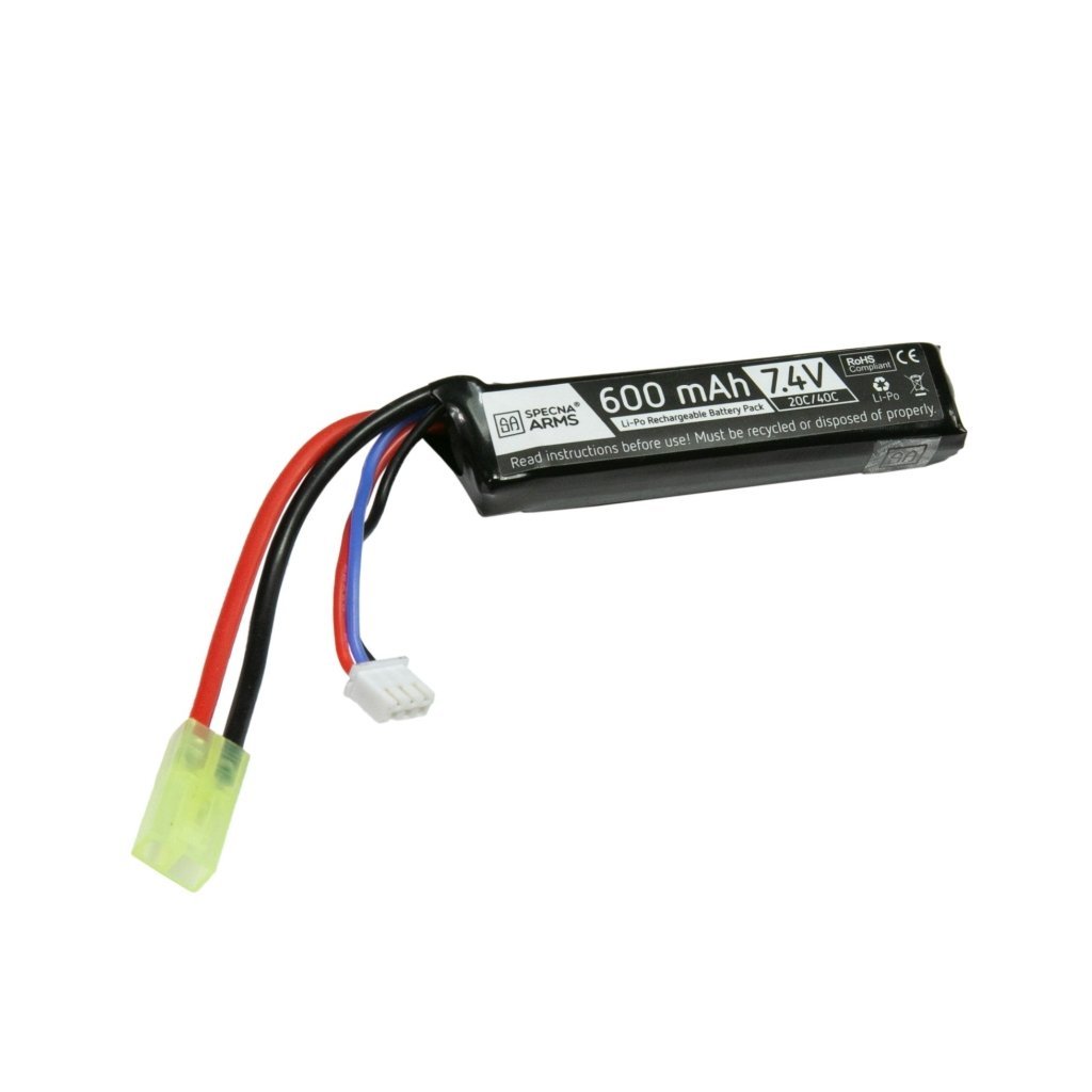 7.4V/600mAh (20/40C) Li-Pol Battery – Specna Arms Energy is a compact Li-Pol battery designed for airsoft guns with limited space, offering high performance and low weight.