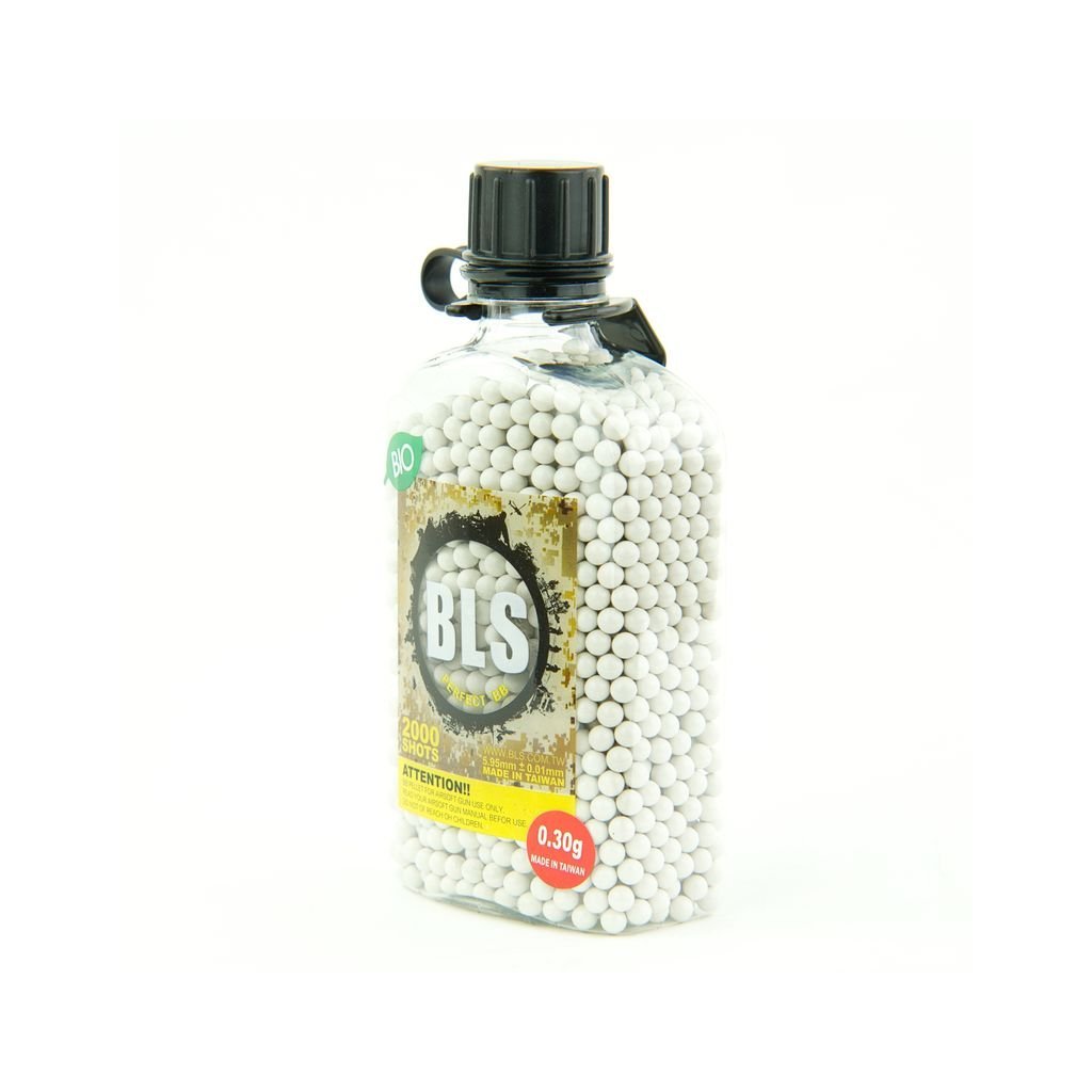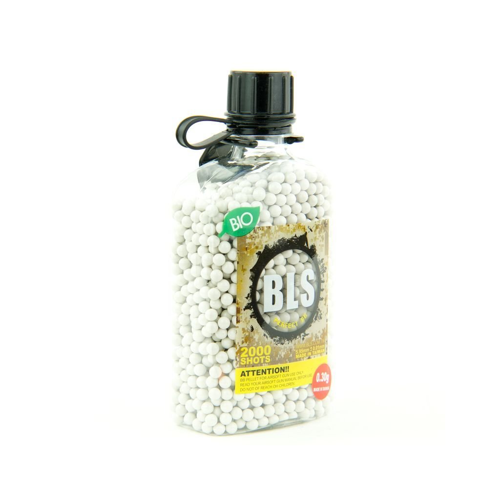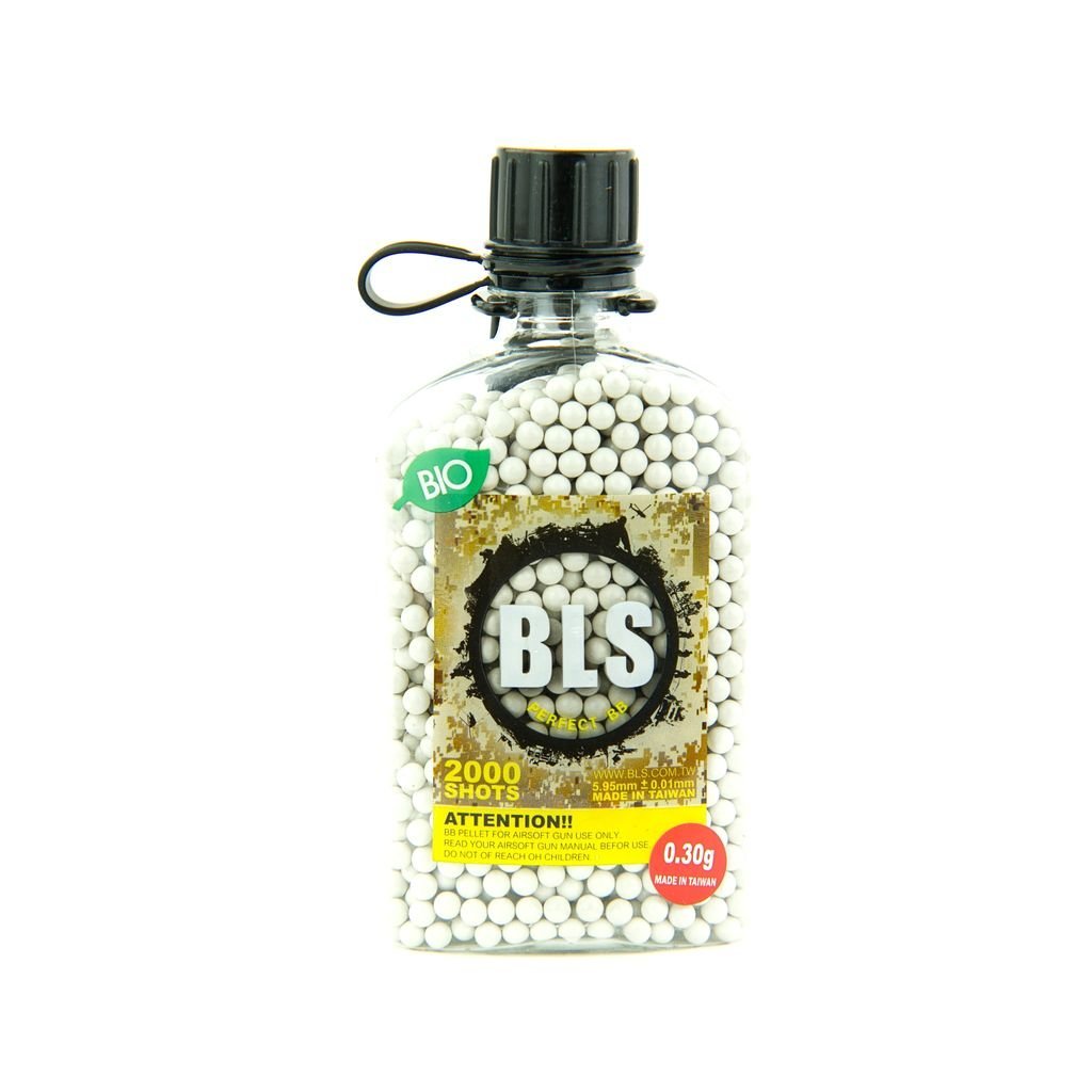 BB BLS BIO 0.30g/2000 They are biodegradable airsoft bBs weighing 0.30 g in a package of 2000 pcs, designed for accurate shooting at longer distances and more powerful guns.