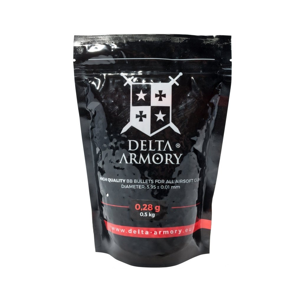 BB Delta Armory 0.28g/1785 they are heavier airsoft bBs weighing 0.28 g in a package of 1785 pieces, designed for better flight stability and increased accuracy at longer distances.