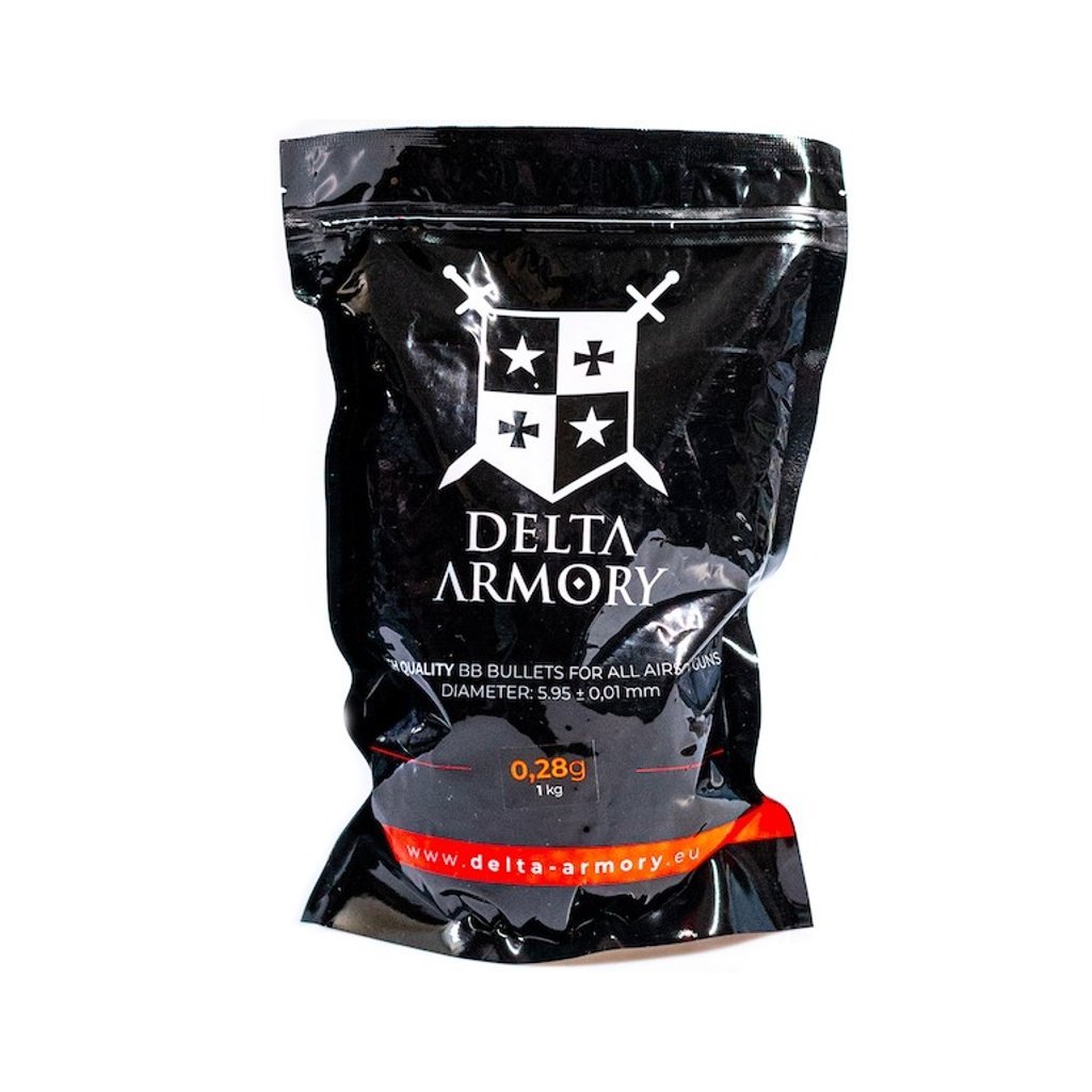 BB Delta Armory BIO 0.28g/3500 they are heavier biodegradable airsoft bBs weighing 0.28 g in a pack of 3500 pieces, designed for better flight stability and lower environmental impact.