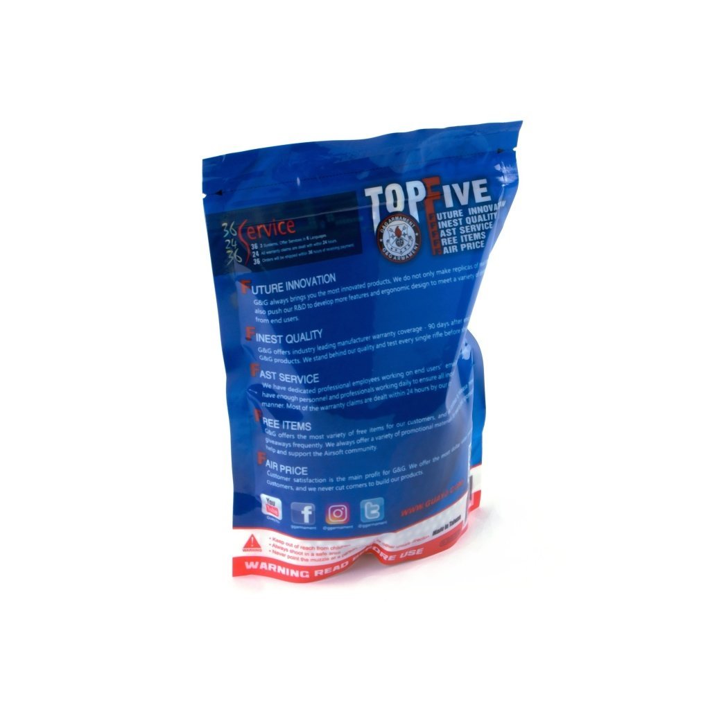 High quality 6mm bBs from the well-known manufacturer G&G. These are some of the highest quality BBs on the market.