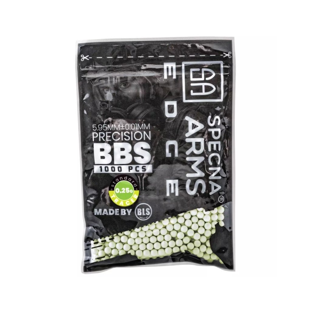 BB Specna Arms Tracer EDGE 0.25/1000 (illuminating) illuminating BB bBs weighing 0.25 g, package contains 1000 pieces for use with tracer equipment and night games.