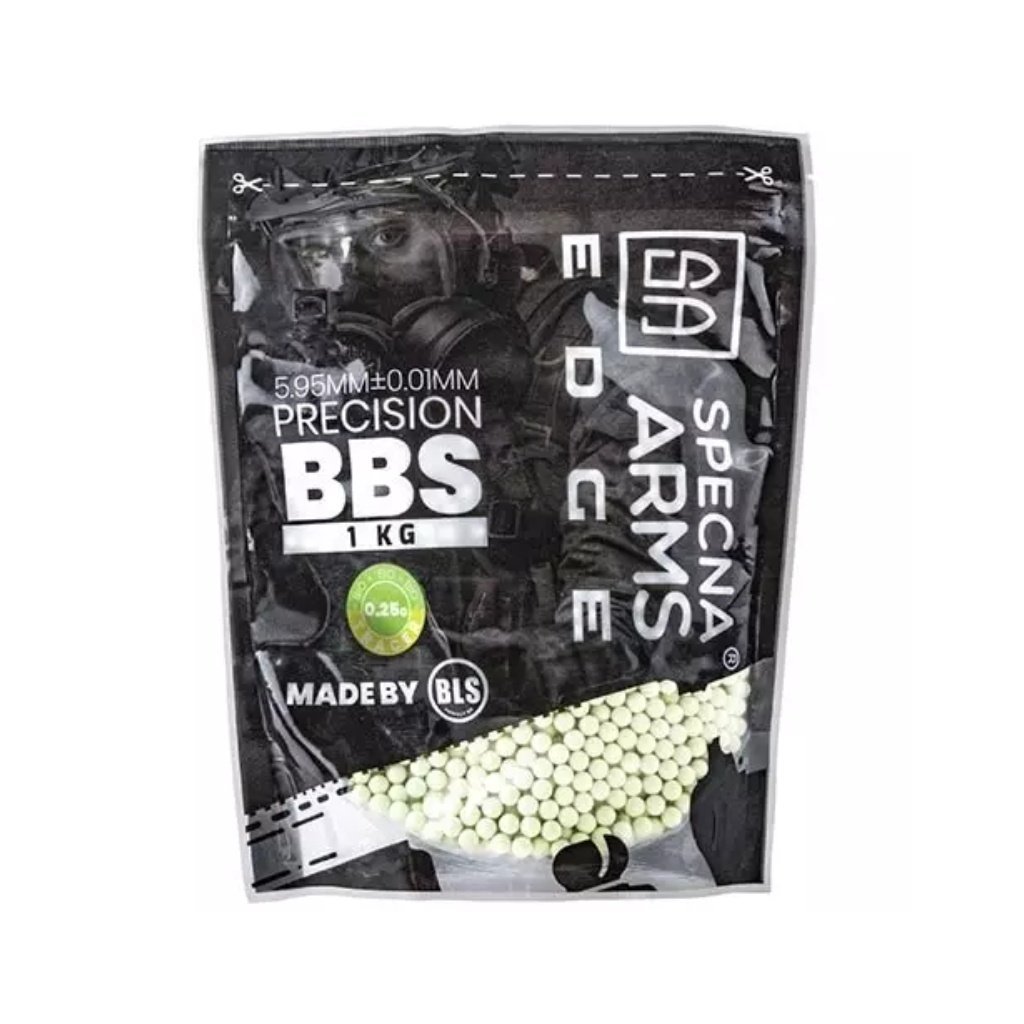 BB Specna Arms Tracer EDGE BIO 0.25/4000 (illuminating) Biodegradable illuminating BB bBs Specna Arms Tracer EDGE weighing 0.25 g are designed for reliable operation in tracer units and provide clear light trails for easy trajectory tracking in reduced visibility; precision manufacturing ensures uniform weight, smooth surface for trouble-free feeding and consistent flight characteristics, large pack of 4000 pieces is ideal for intensive night games and long-term training, and the biodegradable material used reduces the environmental impact of outdoor use.