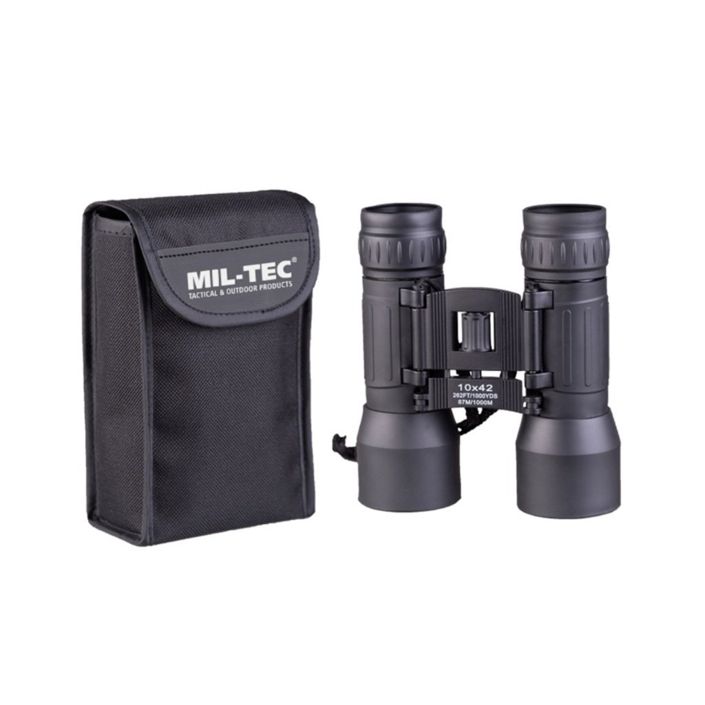 10x42 Rubberized Binoculars (Black) MIL-TEC is a versatile observation binoculars with a tenfold magnification, rubberized body, and rich accessories for outdoor, tactical, and recreational use.