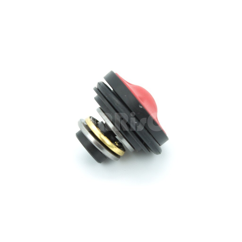 The piston Bore Up counter-pressure head SHS serves as a key component for improving the performance of the airsoft guns by increasing the pressure in the cylinder set and more efficient use of the energy of the propellant gases. The counter-pressure design ensures smoother and quieter operation, which is especially suitable for situations requiring reduced noise. The Bore Up design allows for higher airflow, contributing to increased speed shooting and overall performance guns. A perfect seal is ensured by a single O-ring that minimizes air leakage. The design also includes a ball bearing, which promotes smooth operation and reduces mechanical stress.