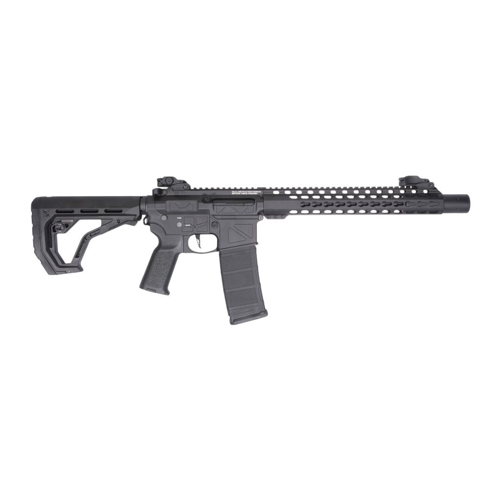 R15 SilentOps DMR has an ALL-METAL construction, with the entire gun (handguard, body, trigger, sling loop, and other smaller external parts) made of metal. The RIS rail has an adjustable rear sight mounted on it. The handguard is of the KEYMOD type, 12.2 inches (31 cm) long, which, compared to a standard RIS handguard, has the advantage of being lighter, and the RIS rails placed on it can be moved as needed. (RIS rails are not included in the delivery.) The DA-A10 AR15 SilentOps DMR is also equipped with a 110mm foam suppressor, which starts at the thread on the end of the barrel in the handguard and continues out of the guns. The weapon also has a unique serial number.