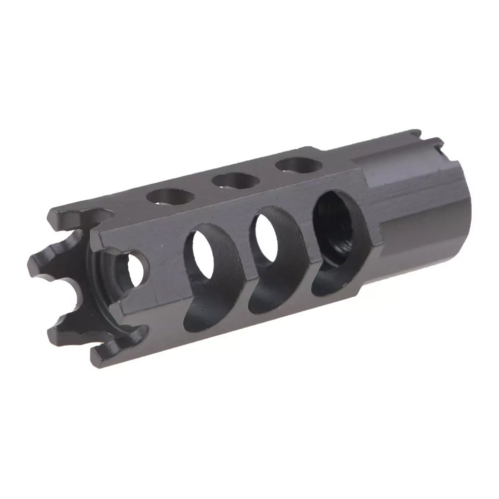 Steel DTK1 suppressor designed for AK replicas with a 14 mm CCW thread.