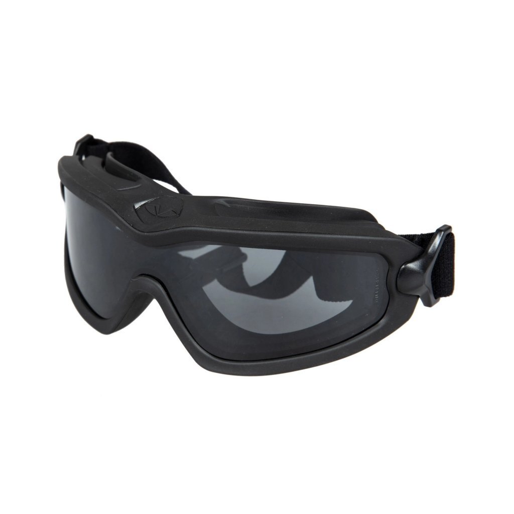 Protective goggles V2G are designed for maximum eye safety in tactical, sports, and professional use. The lens, curved at 9.75 degrees, ensures extended protection in the side areas and an unrestricted field of vision. The polycarbonate lens is equipped with a combined Anti-Fog and Anti-Scratch coating, which protects against fogging and scratching, and also has a self-regenerating capability – minor scratches will automatically heal within minutes.