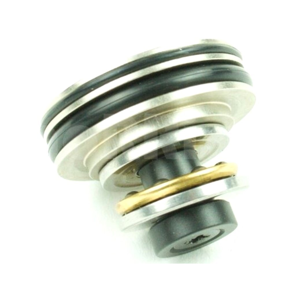The piston CNC duralumin head with axial bearing is a lightweight and durable upgrade component designed for perfect sealing, increased performance, and extended spring life in the airsoft weapon.