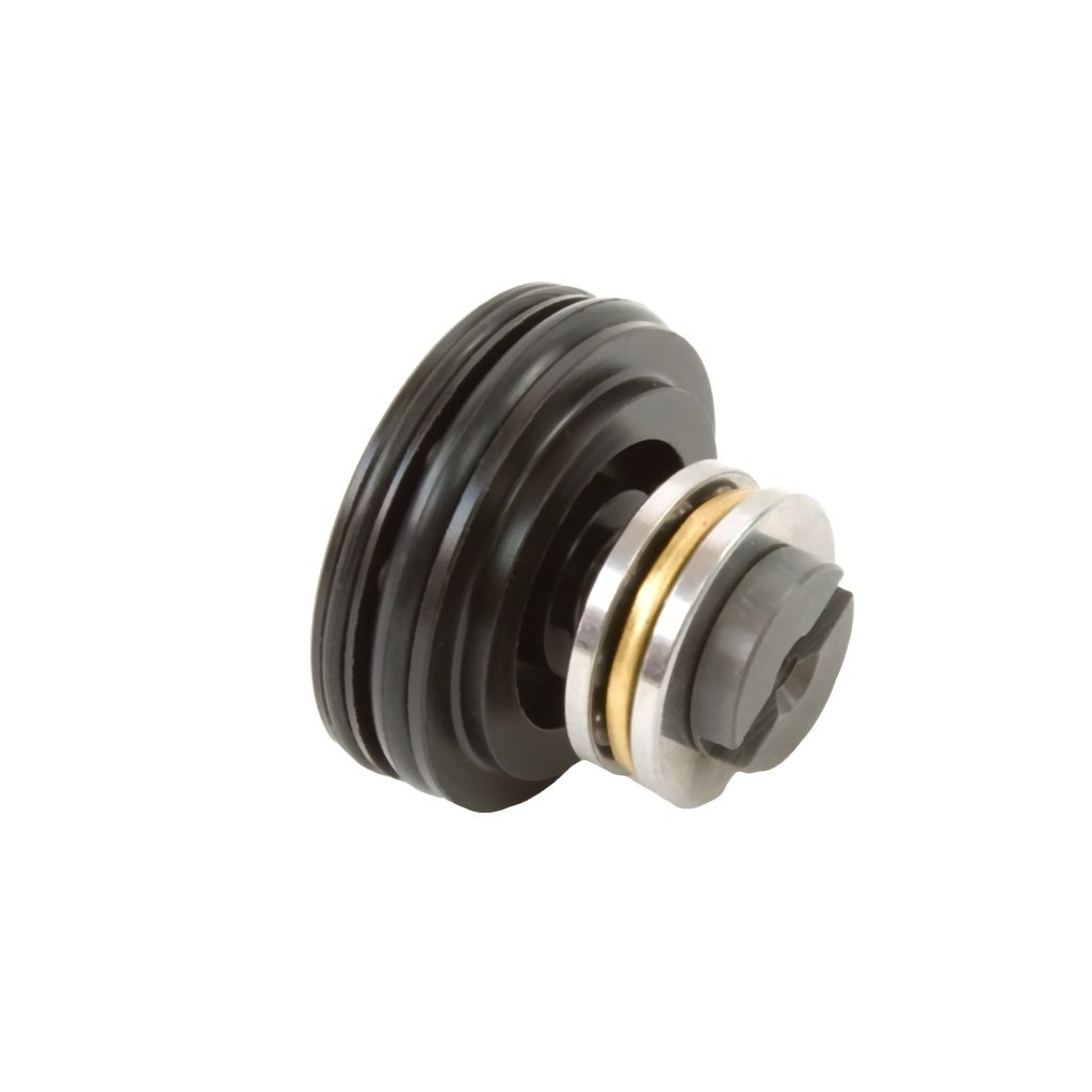 The plastic head piston counter-pressure CNC is made of high-quality POM-C plastic with a very low coefficient of friction and high strength. The design is equipped with two high-quality O-rings, a guide and a sealing one, and eleven counter-pressure holes with sophisticated geometry for maximum tightness in the cylinder. The piston head includes a ball bearing, which ensures smooth operation of the spring and reduces its stress. The special connection of the piston head with the piston using a bearings flange made of aircraft duralumin with a thread contributes to the high durability of the assembly. The weight of the head itself is only 3 g and 9.1 g including bearings, flange and screw. The product is made in the Czech Republic.