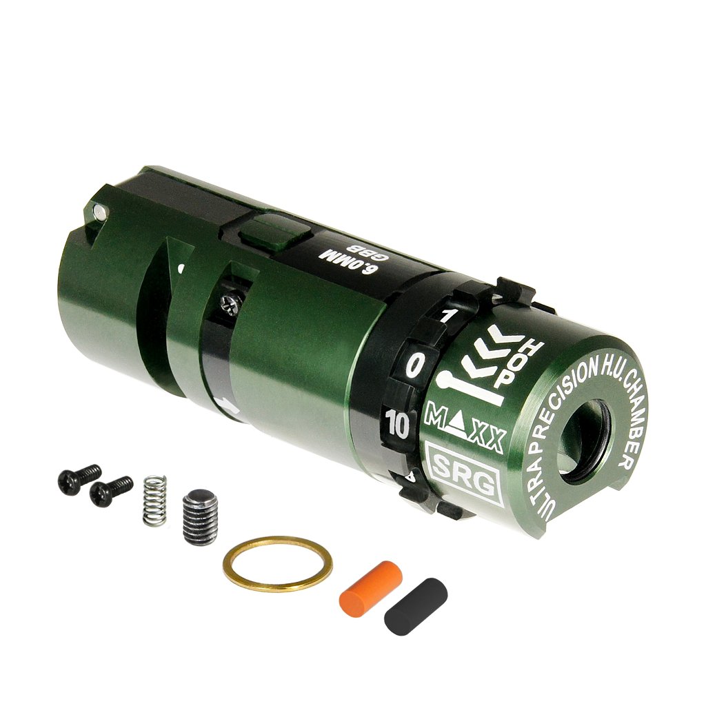 The rotary dial design ensures high precision of hop-up adjustment. The SRG version is compatible with VSR and GBB barrels.
