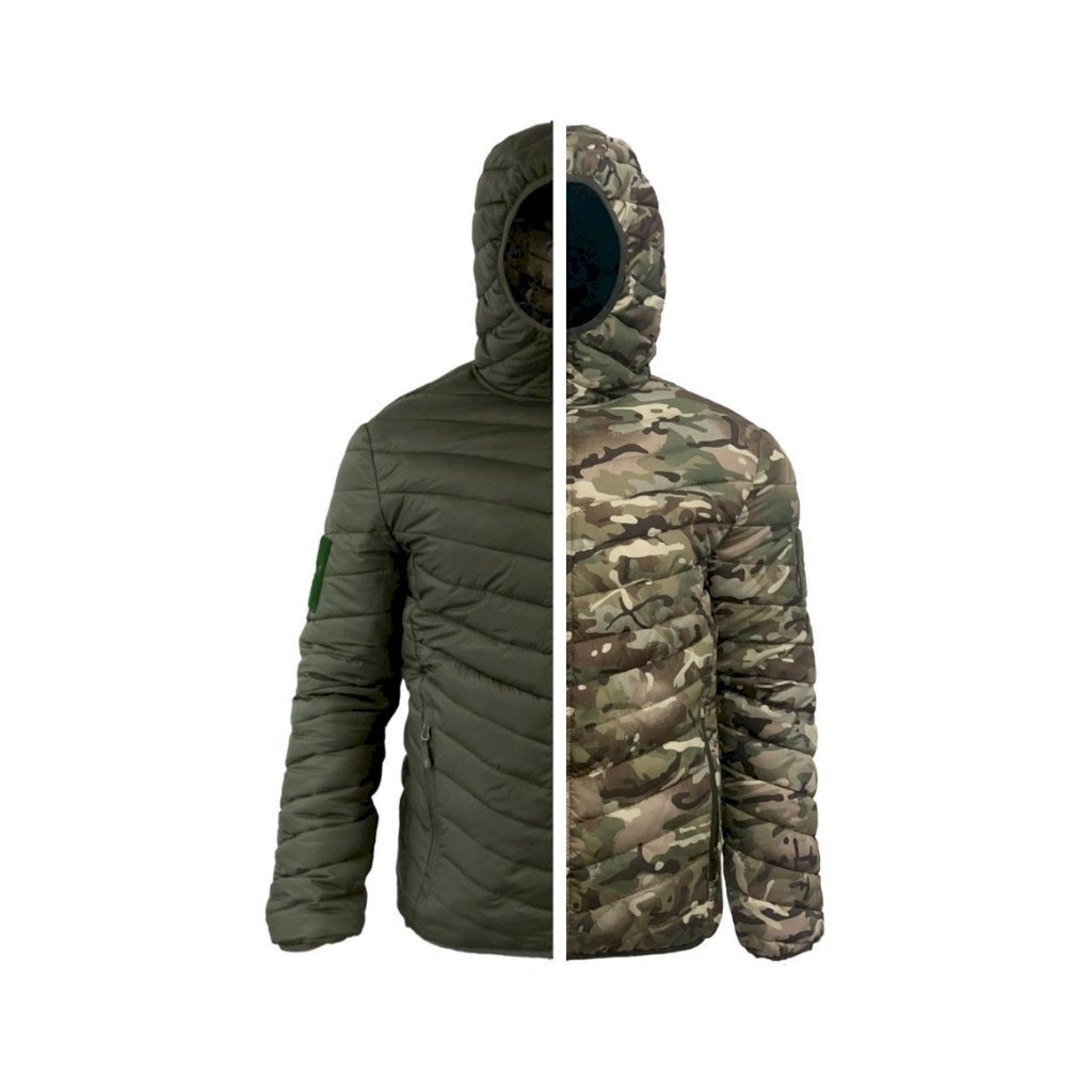 Texar Reverse Jacket is a reversible jacket with synthetic down filling, a waterproof zipper, and a drawstring hood, suitable for cold autumn and winter weather.