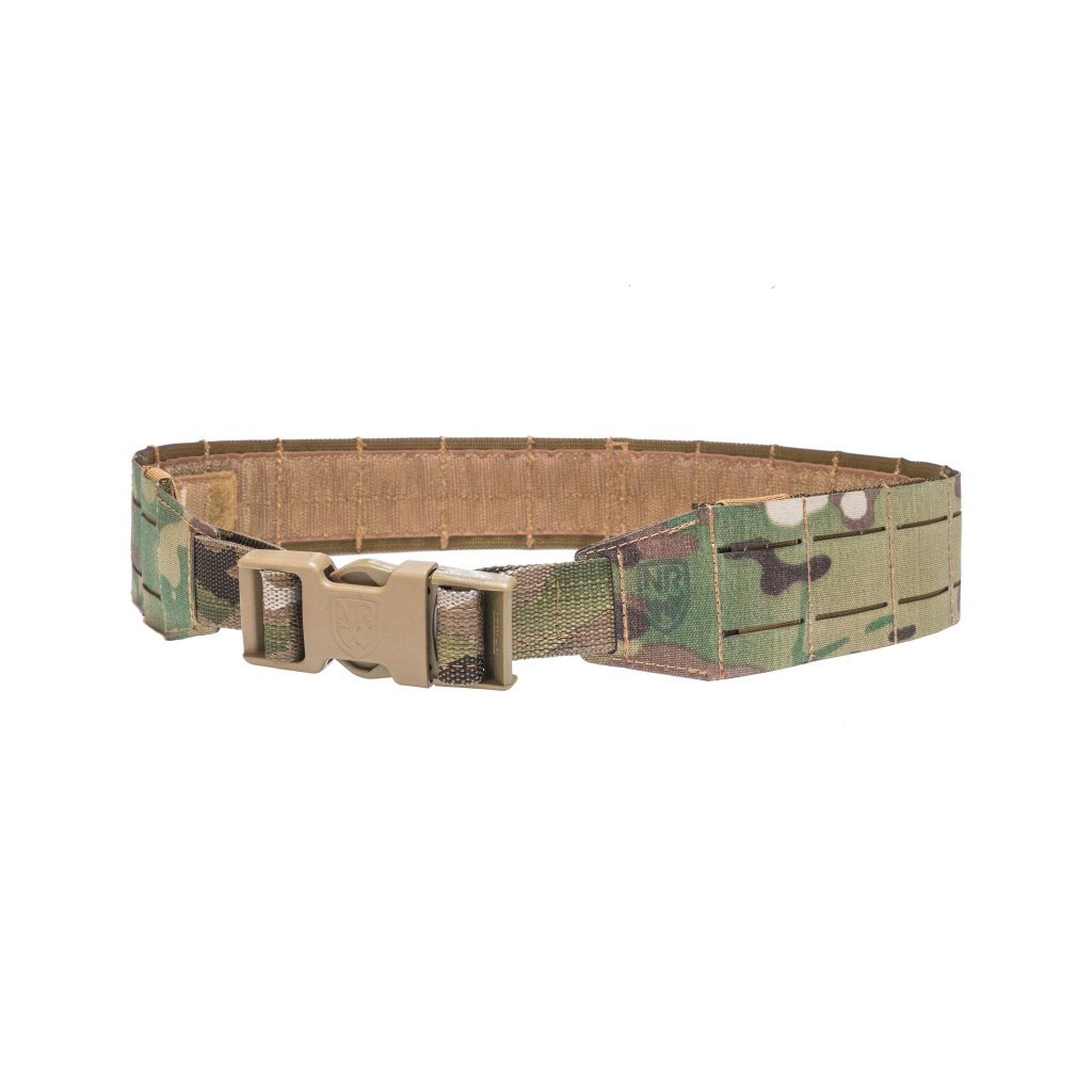 Micro tactical belt with plastic buckle (Multicam) - New River is a lightweight, low-profile shooting belt with dual-sided size adjustment, a removable buckle, and an inner loop-lined belt for hook-and-loop attachment.