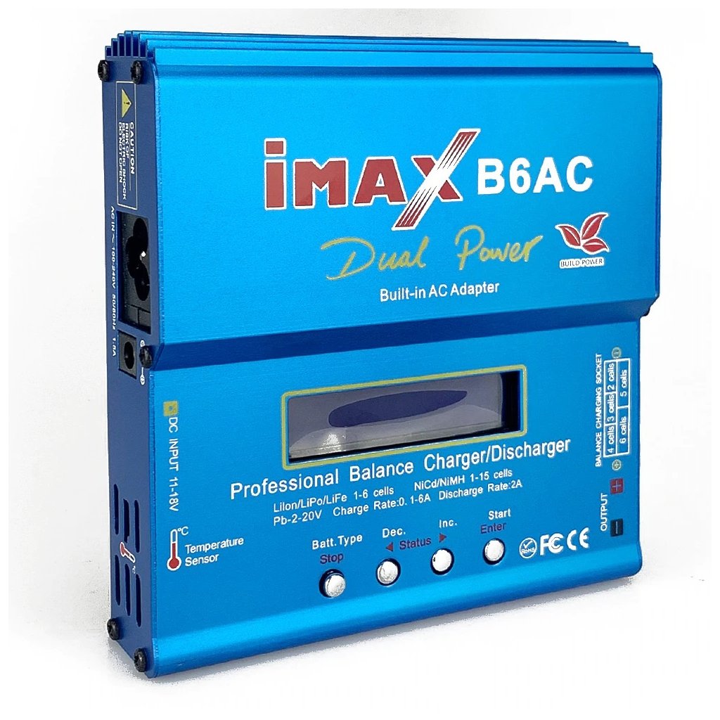 - Supports all types of batteries used in model making: Ni-Cd, NiMh, Li-Po, Lilo, Li-Fe, Pb.
