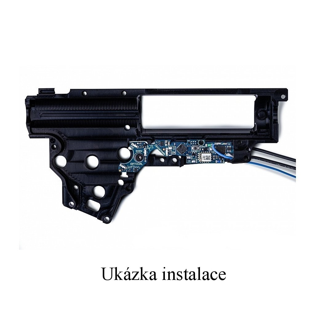 Optical sensors are used to detect trigger movement, firing mode, and shooting cycle.