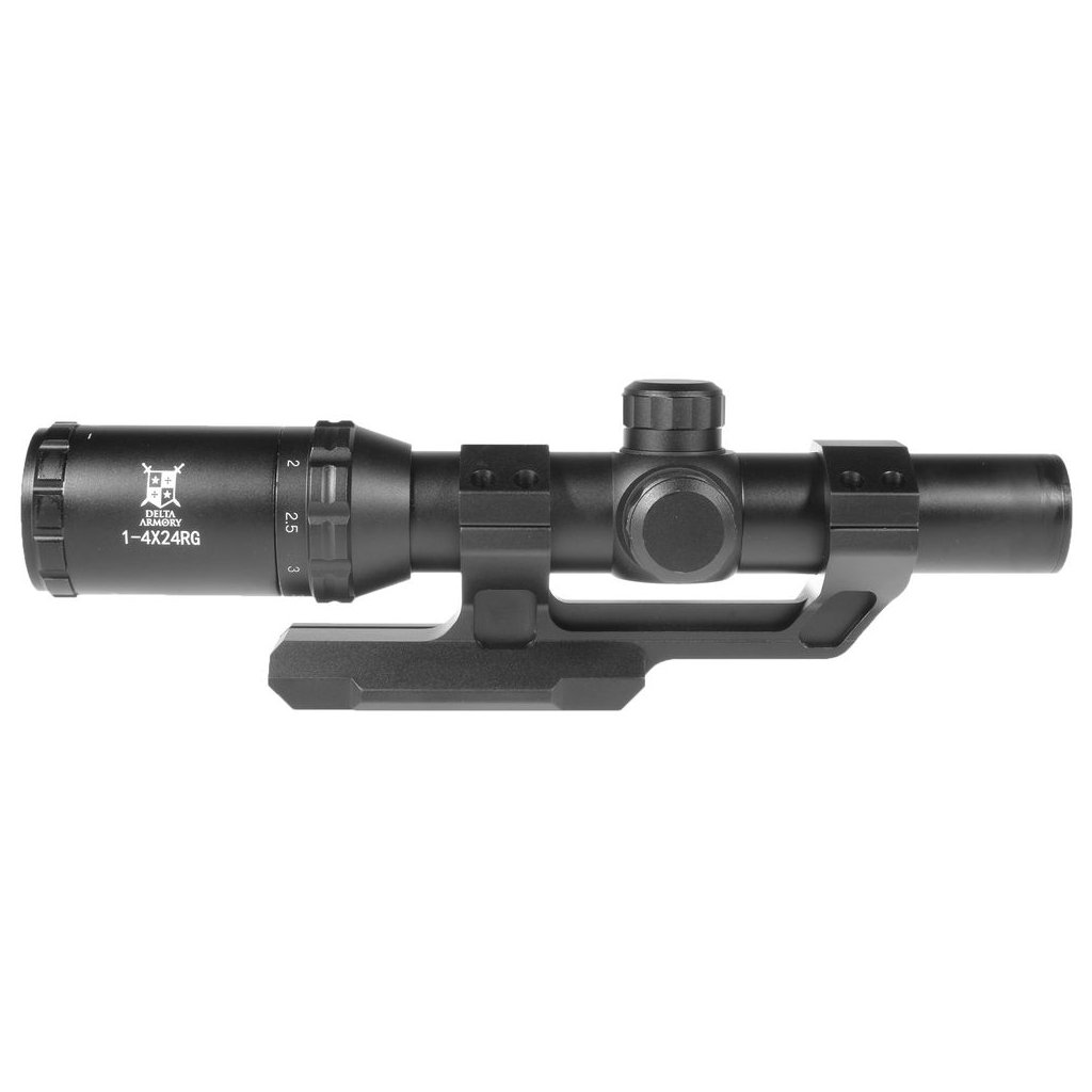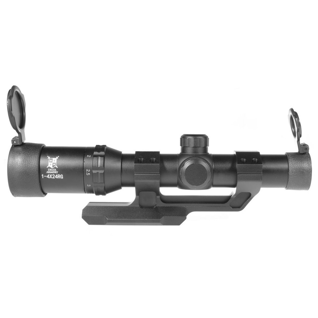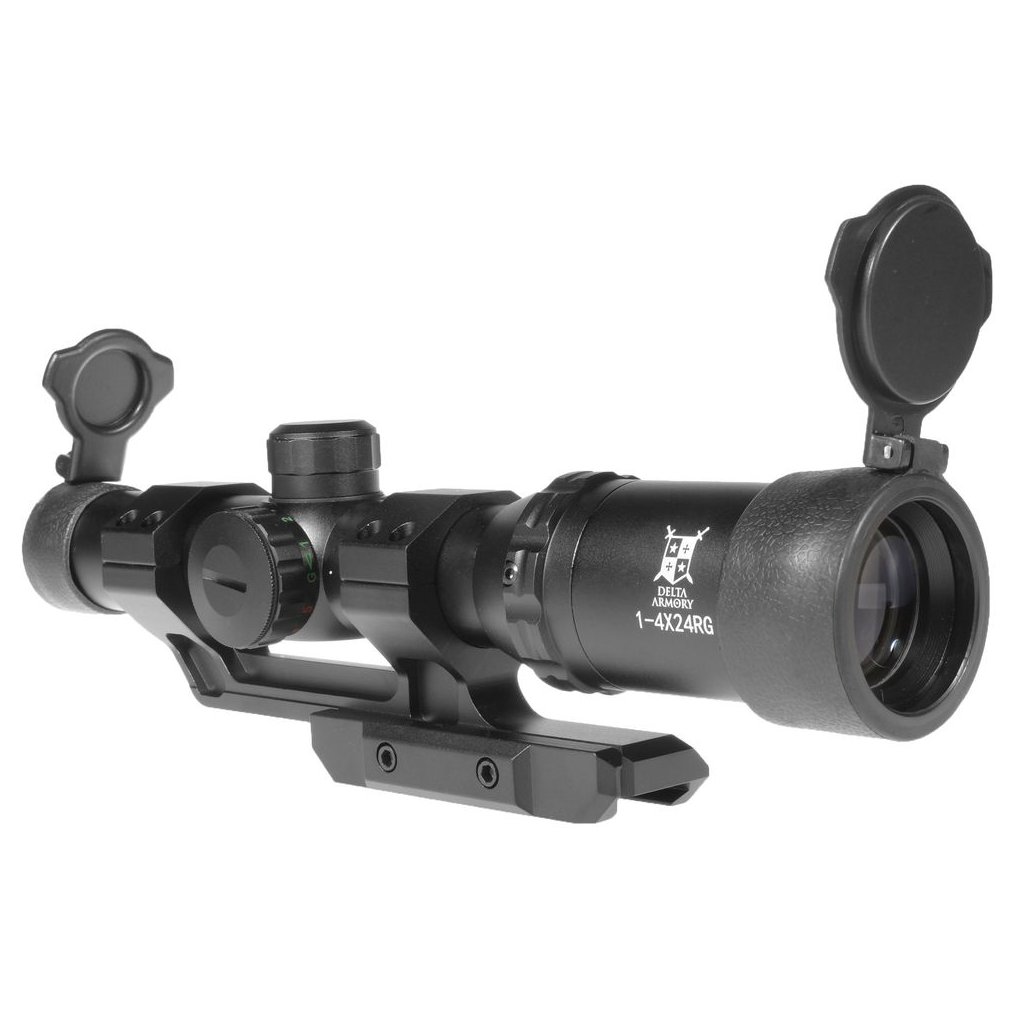 Optics from Delta Armory are made of metal. It mounts onto a 22mm RIS rail. Magnification is adjustable from 1 to 4x. The reticle is adjustable horizontally and vertically. The reticle has the option of illumination in two colors, red and green, and in various illumination intensities from 1 to 5.