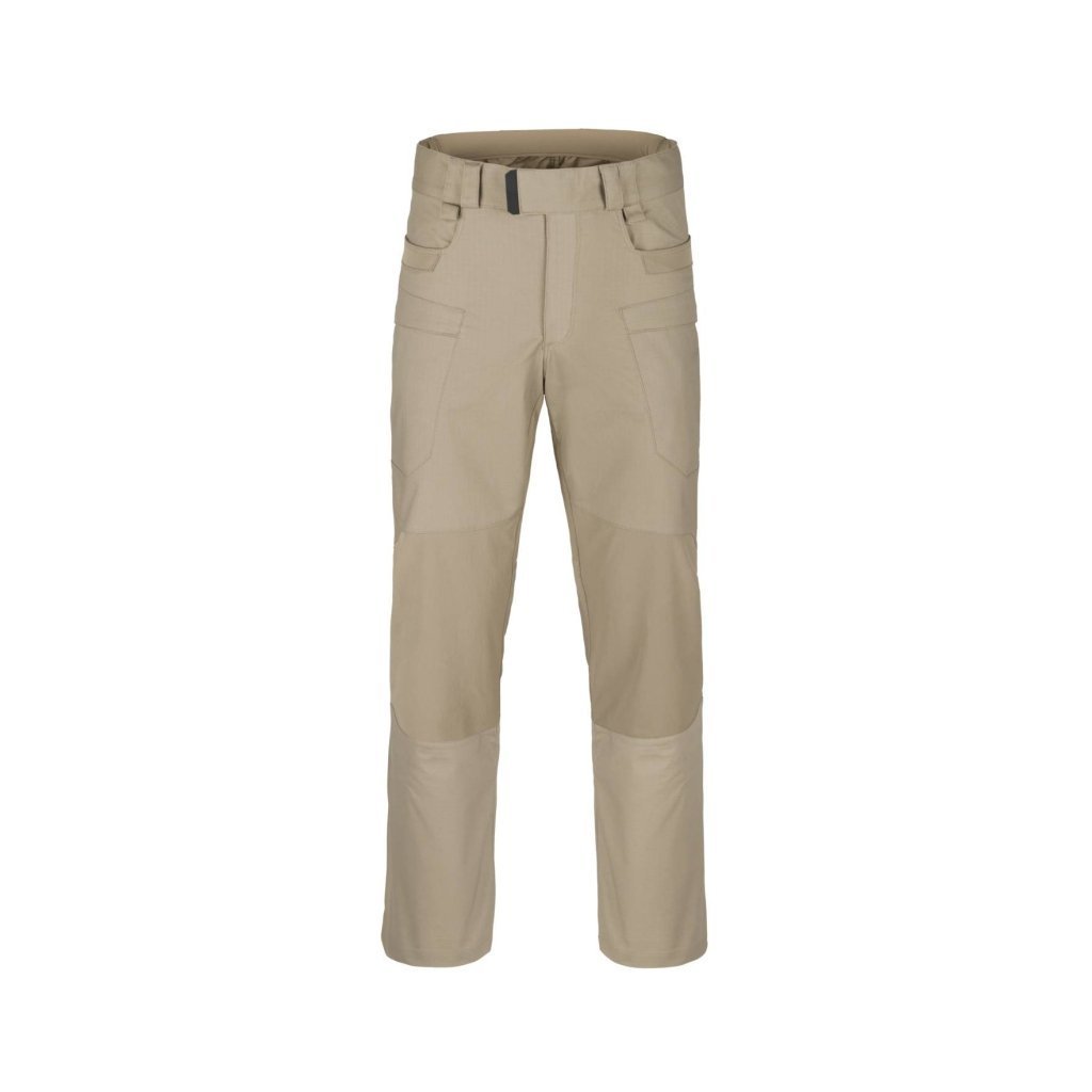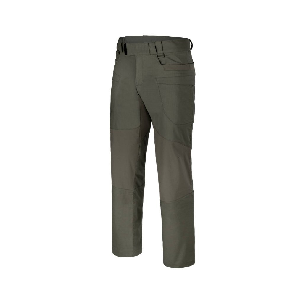 Tactical HYBRID Pants - HELIKON The HYBRID tactical pants from HELIKON combine robust reinforced sections in high-stress areas with elastic stretch panels in movement zones, offering an ergonomic cut with pre-shaped knees and a crotch gusset for freedom of movement, numerous pockets including cargo and hidden EDC pockets provide practical gear storage, an adjustable waist, belt loops, and reinforced seams ensure reliability in the field and civilian deployment, and the material combination minimizes weight while maintaining durability.