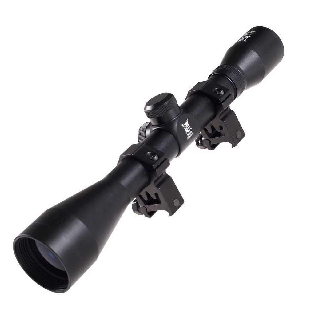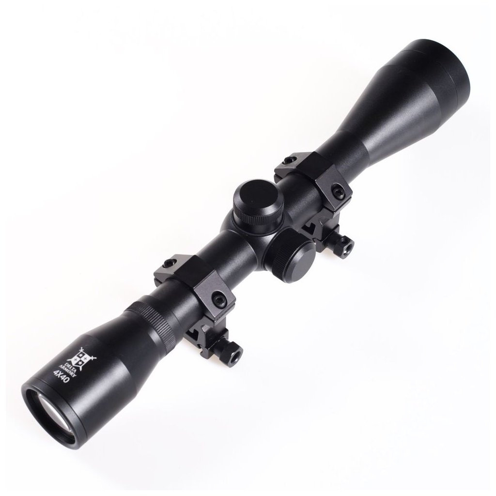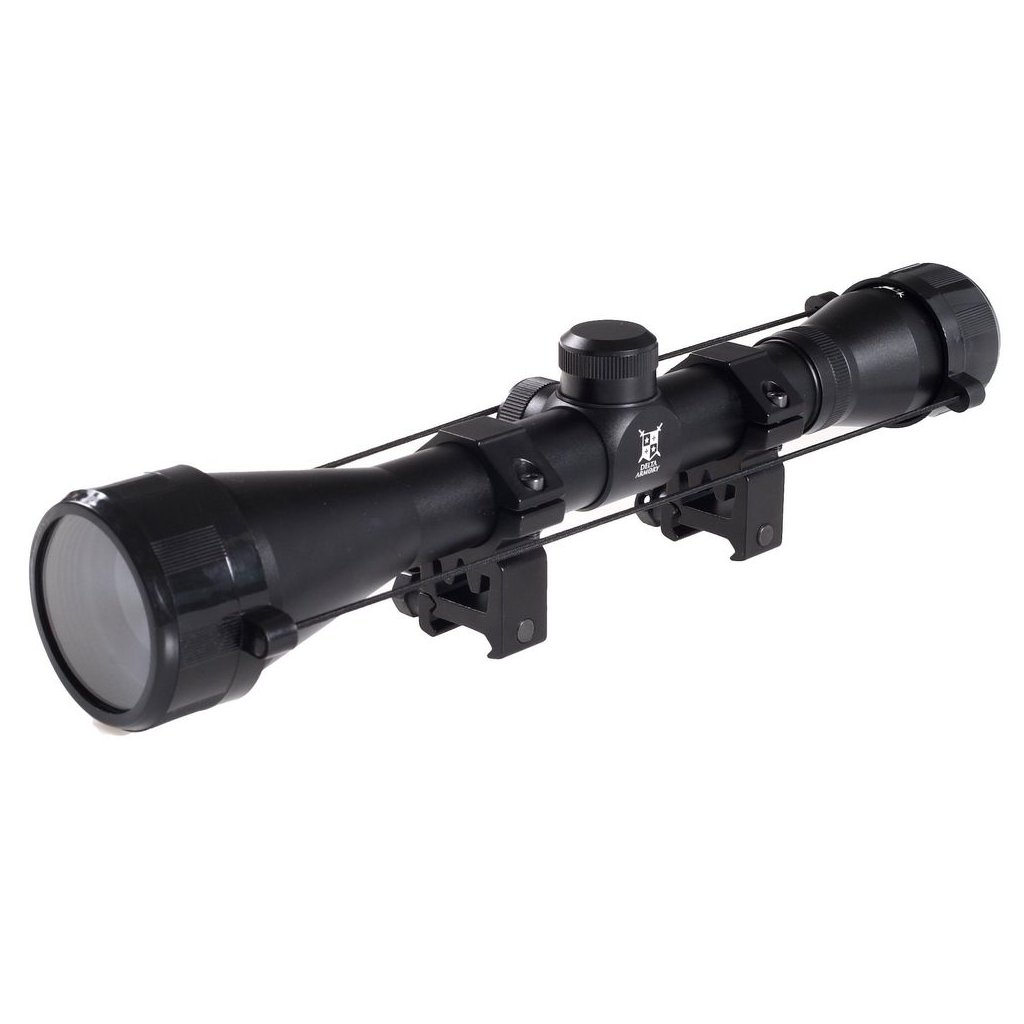 The 4x40 scope from Delta Armory is designed for precise shooting and is intended for airsoft guns. Instead of a traditional reticle and gap, it features a pin-mounted reticle that increases aiming accuracy and is located in the focal plane. The 4x40 scope with a 40mm objective lens diameter offers 4x ZOOM magnification. It is resistant to moisture, dust, fogging, and common shocks. It has removable lens protective covers. It can also be used as a spotting scope. The scope is all-metal and made of anodized aluminum in a non-reflective matte black finish. The tube diameter is 1" (2.54 cm). It mounts onto a 22mm RIS rail. The delivery includes 22 mm mounting rings.