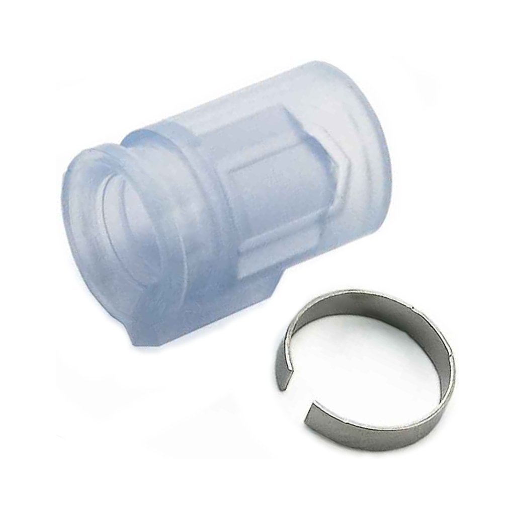 Hop-up rubber silicone MR Hop 70° Maple Leaf (VSR+GBB) from the MR HOP Maximum Range series is designed to improve range and shooting consistency for GBB gas guns and VSR10 sniper rifles. The enlarged contact surface inside the rubber ensures a more effective hop-up effect, especially when using heavier BBs. The rounded pressure surface allows for even pressure of the arm and stable rotation of the bBs. The package includes a metal ring that can be used to further increase the seal between the rubber and the barrel, but its use is optional. The silicone material ensures reliable performance even at low temperatures.