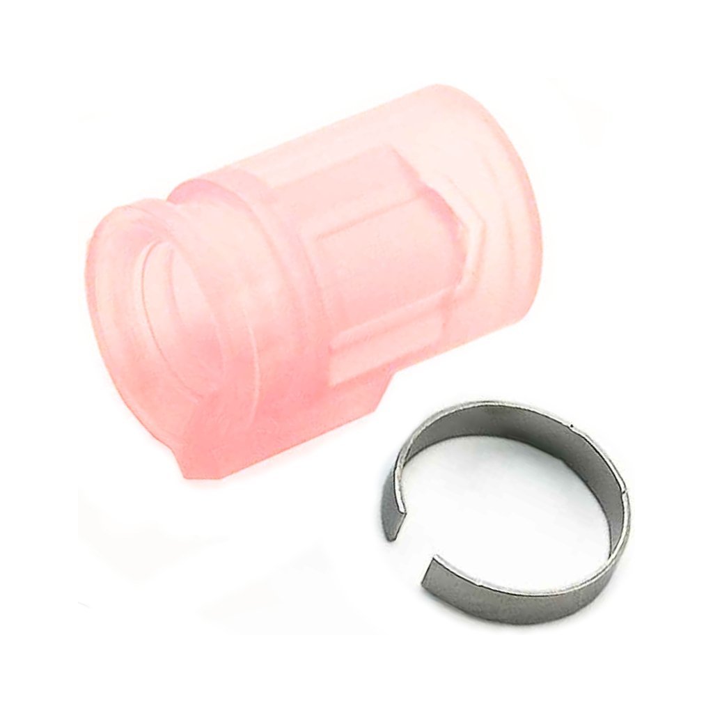 Hop-up rubber silicone MR Hop 80° Maple Leaf (VSR+GBB) from the MR HOP Maximum Range series is designed to increase range and shooting consistency for GBB gas guns and VSR10 sniper rifles. The enlarged contact surface inside the rubber ensures a more pronounced hop-up effect, especially when using heavier BB pellets. The rounded contact surface allows for even pressure from the nub and stable projectile rotation. The package includes a metal ring that can optionally be used to further increase the seal between the rubber and the barrel. The silicone material ensures reliable performance even at low temperatures.