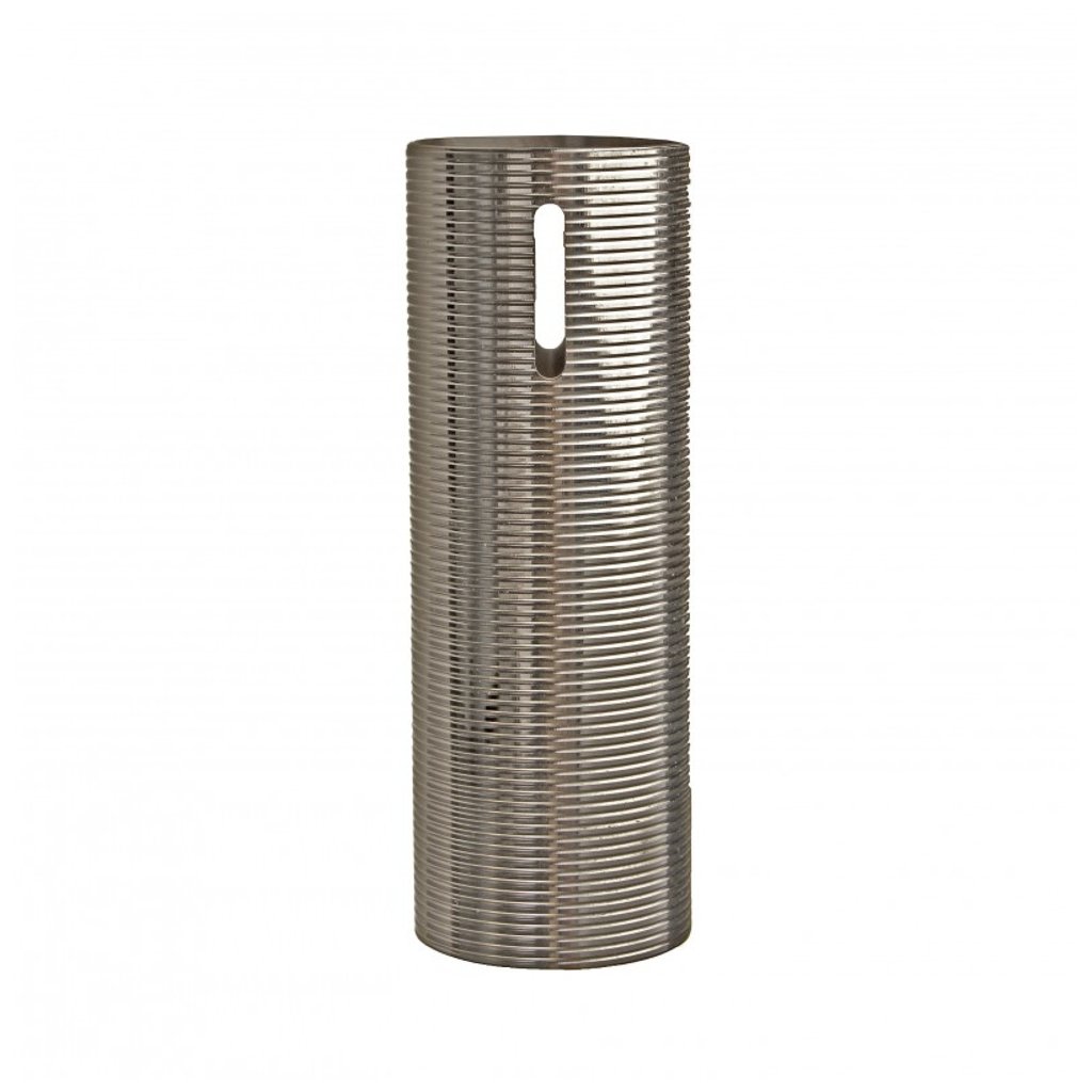 Polished stainless steel cylinder with a hole for airsoft AEG guns.