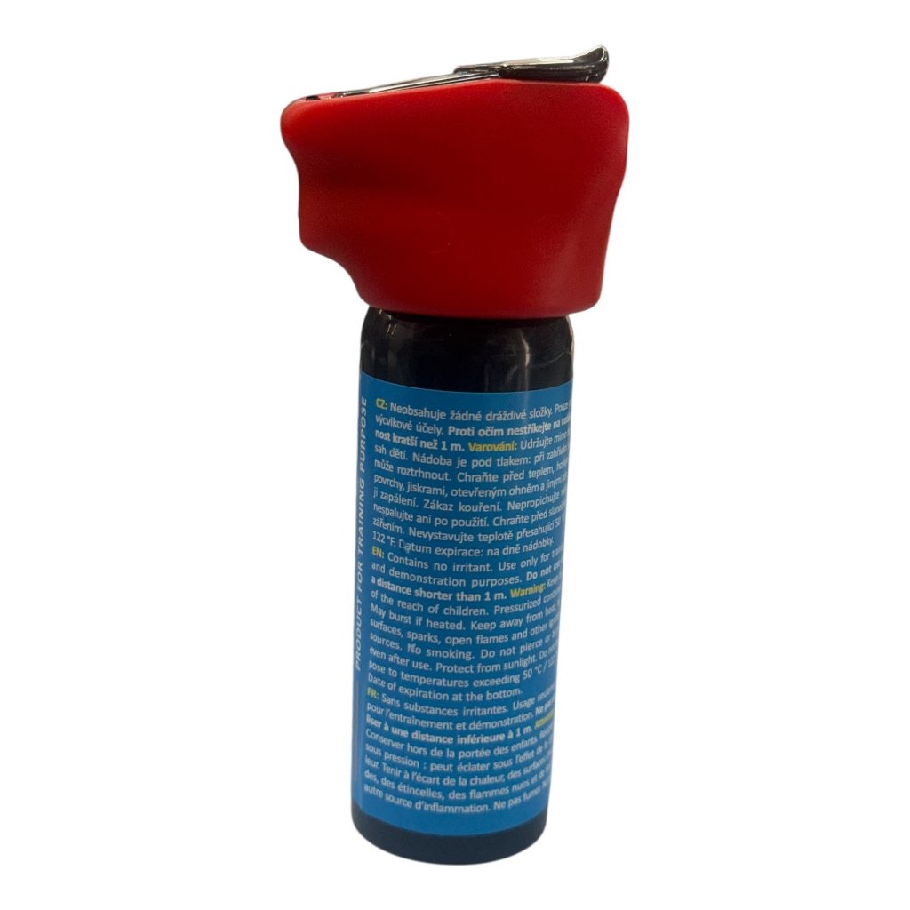 The POLICE JET defense spray is also supplied in a training version. Thanks to it, you will "try out" the control and behavior of a real pepper spray "for practice". This way you will be better prepared for a critical situation where you will use the pepper spray intuitively. The inert filling does not contain any irritant components.