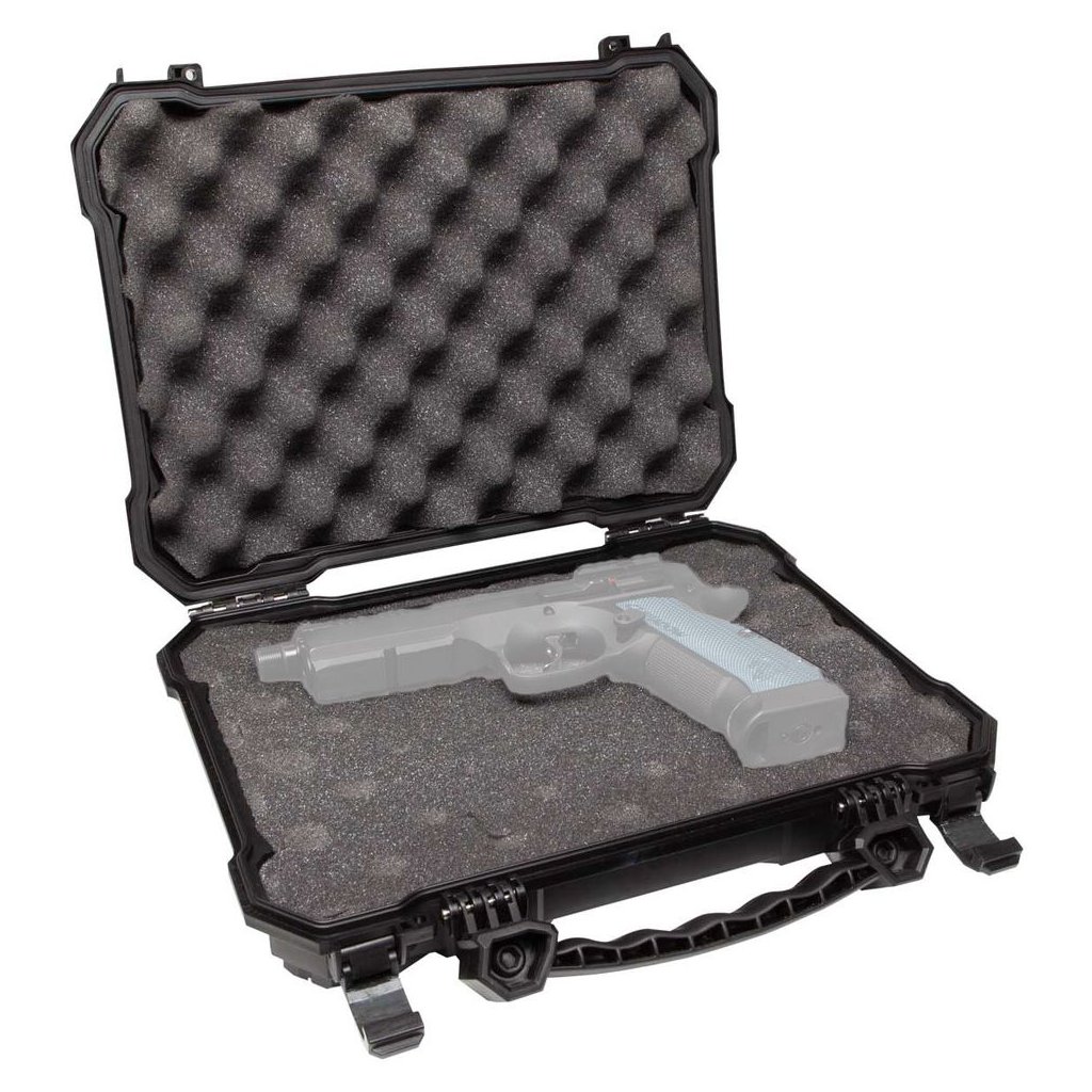 This holster is designed for the toughest handling and is also IPX7 rated waterproof and features an EPDM rubber seal to protect your gear in wet weather or even if submerged during storage. Dual-stage latches and robust padlock loops allow for secure locking of the case to prevent tampering with your firearm. The convenient folding handle allows for easy transport of the ASG tactical pistol case, even when fully loaded.