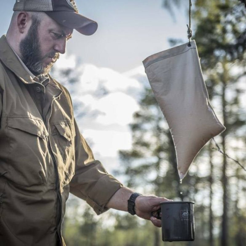 Vodní filtrační sáček, umožňuje prvotní přípravu vody ke konzumaci. Tento filtr, který vychází z konstrukce používané britskou armádou, během druhé světové války, je vybaven integrovaným vakem na přenášení a provázkem pro připevnění na větev. Provázek je opatřen kolíčkem, takže jej nemusíte vázat. To výrazně urychluje použití filtru v terénu. Filtr čistí vodu od mechanických nečistot. Po filtraci stačí použít chemické tablety nebo vodu převařit.