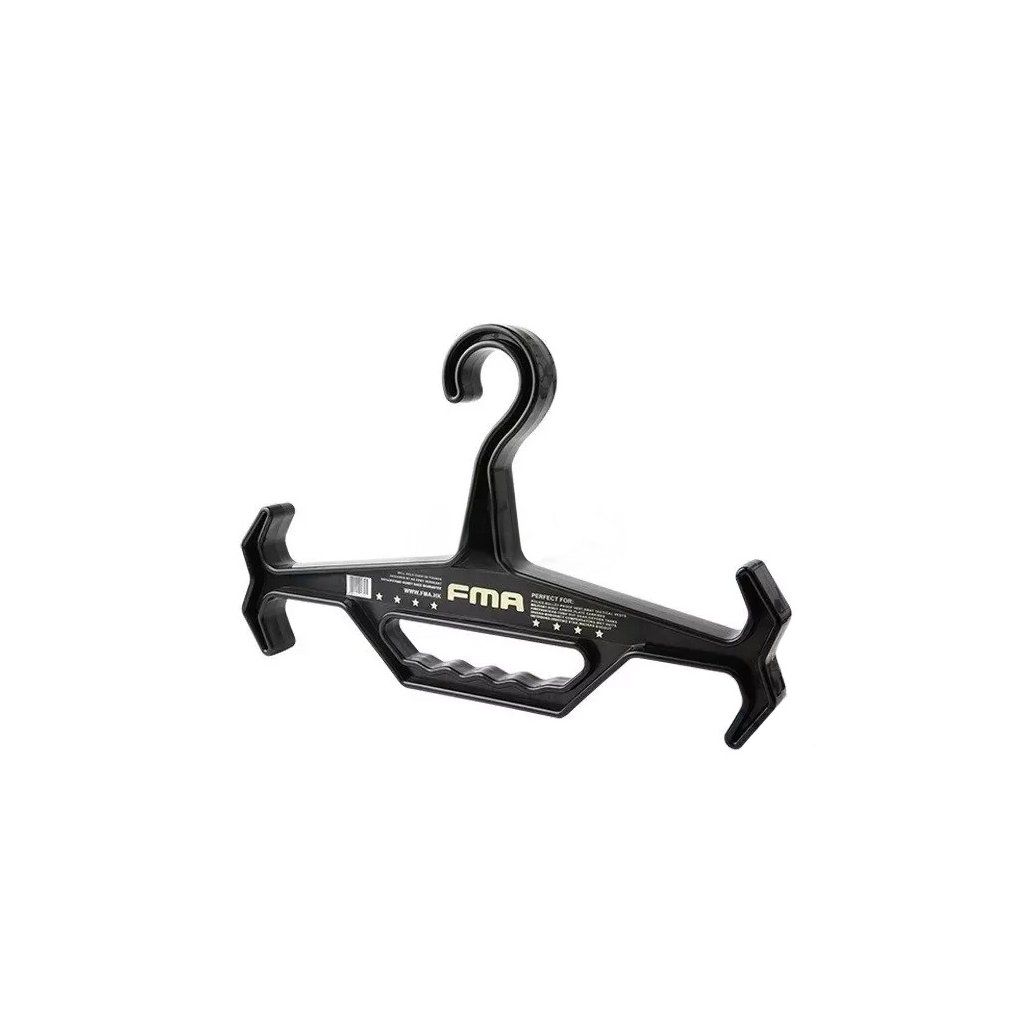 Taktické ramínko FMA je určeno pro bezpečné zavěšení a skladování těžkého taktického vybavení, jako jsou neprůstřelné vesty a další výstroj. Produkt je vyroben z vysoce odolného plastu a je konstruován tak, aby spolehlivě unesl zátěž až 68 kg (150 liber). Díky robustní konstrukci ramínko zabraňuje deformaci výstroje, napomáhá jejímu přehlednému uspořádání a prodlužuje její životnost tím, že eliminuje nevhodné odkládání na zem nebo do rohu. Ramínko je vhodné jak pro skladování, tak pro přepravu vybavení. Černé provedení zajišťuje univerzální využití v různých prostředích.