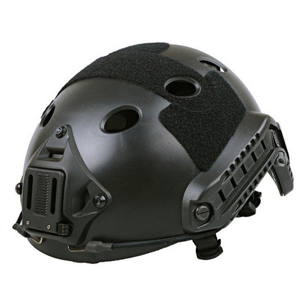 - Lehká airsoftová helma FAST Typ PJ gen.2 v černé barvě od Guerilla Tactical, vyrobená z odolného ABS plastu.